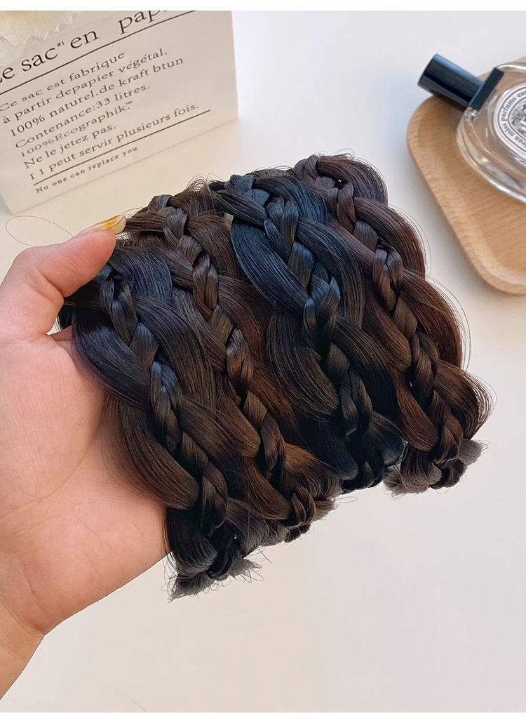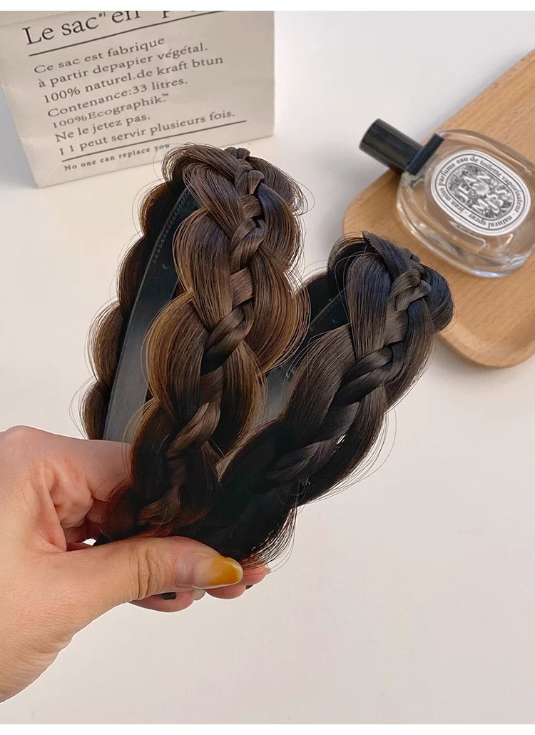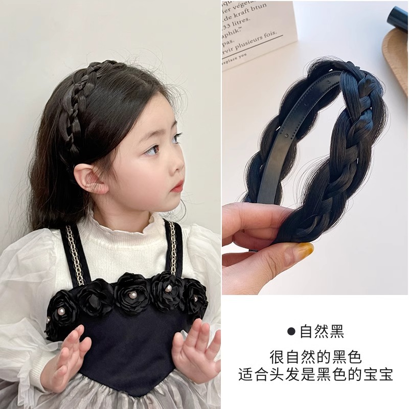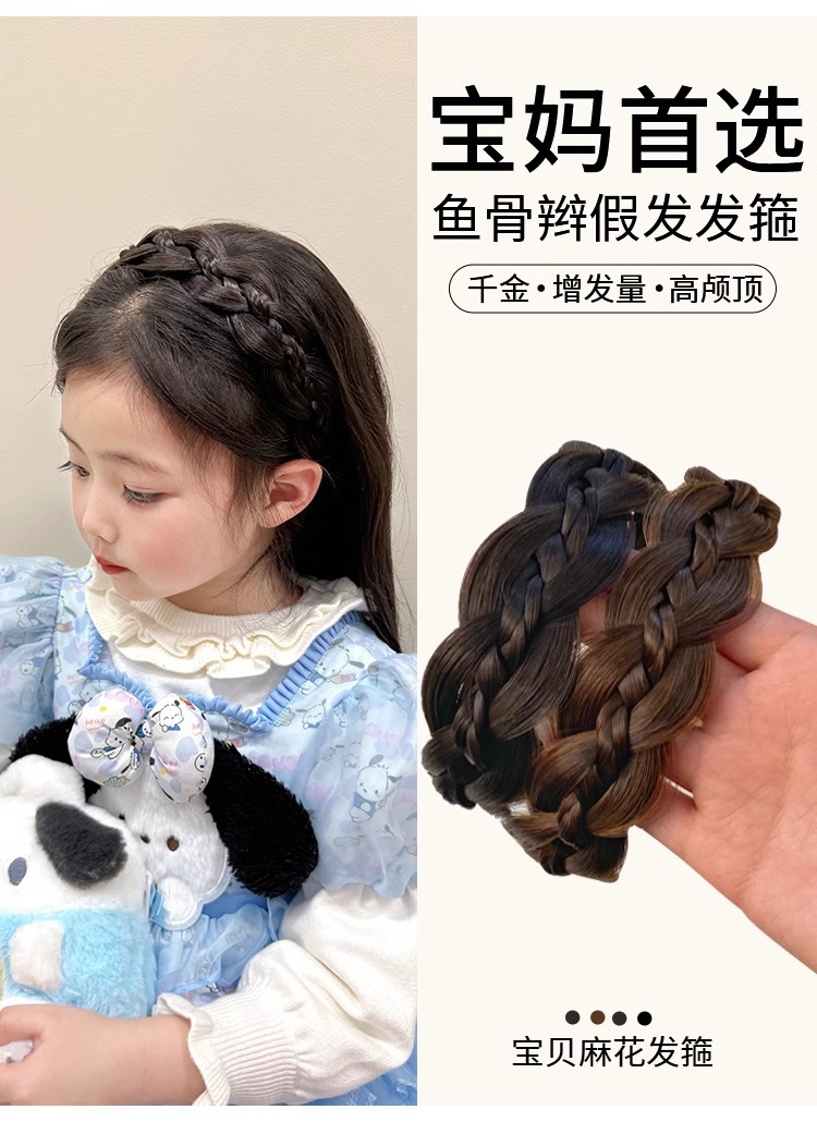 Girls' one-piece fishbone braid, false hair band, braid headband, no head constricting, wide-edge hair tie, headwear