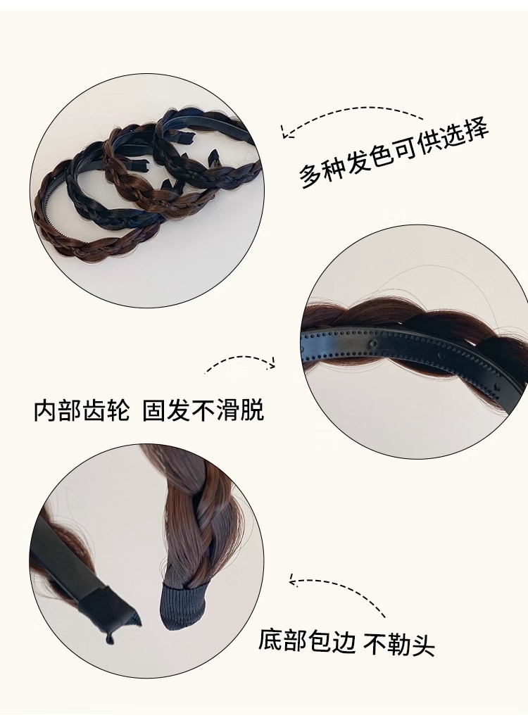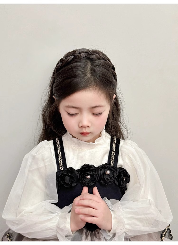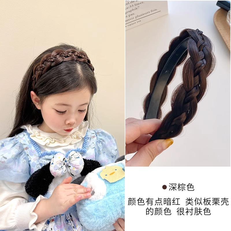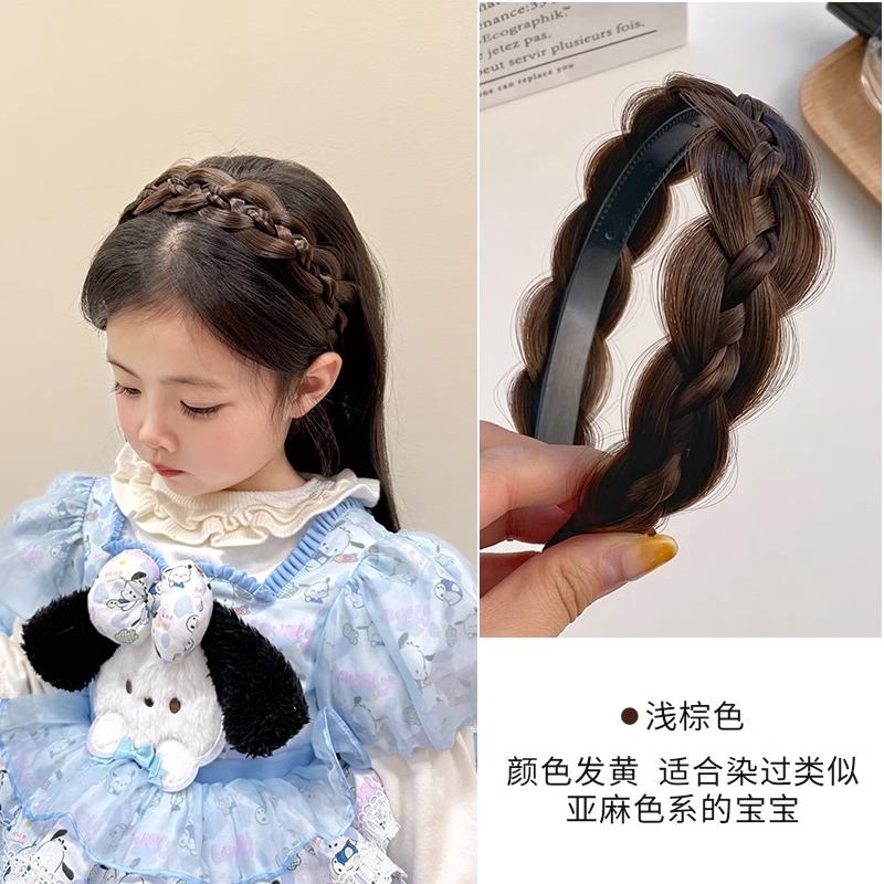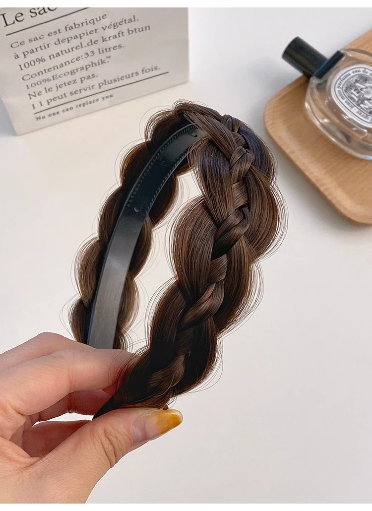 Girls' one-piece fishbone braid, false hair band, braid headband, no head constricting, wide-edge hair tie, headwear