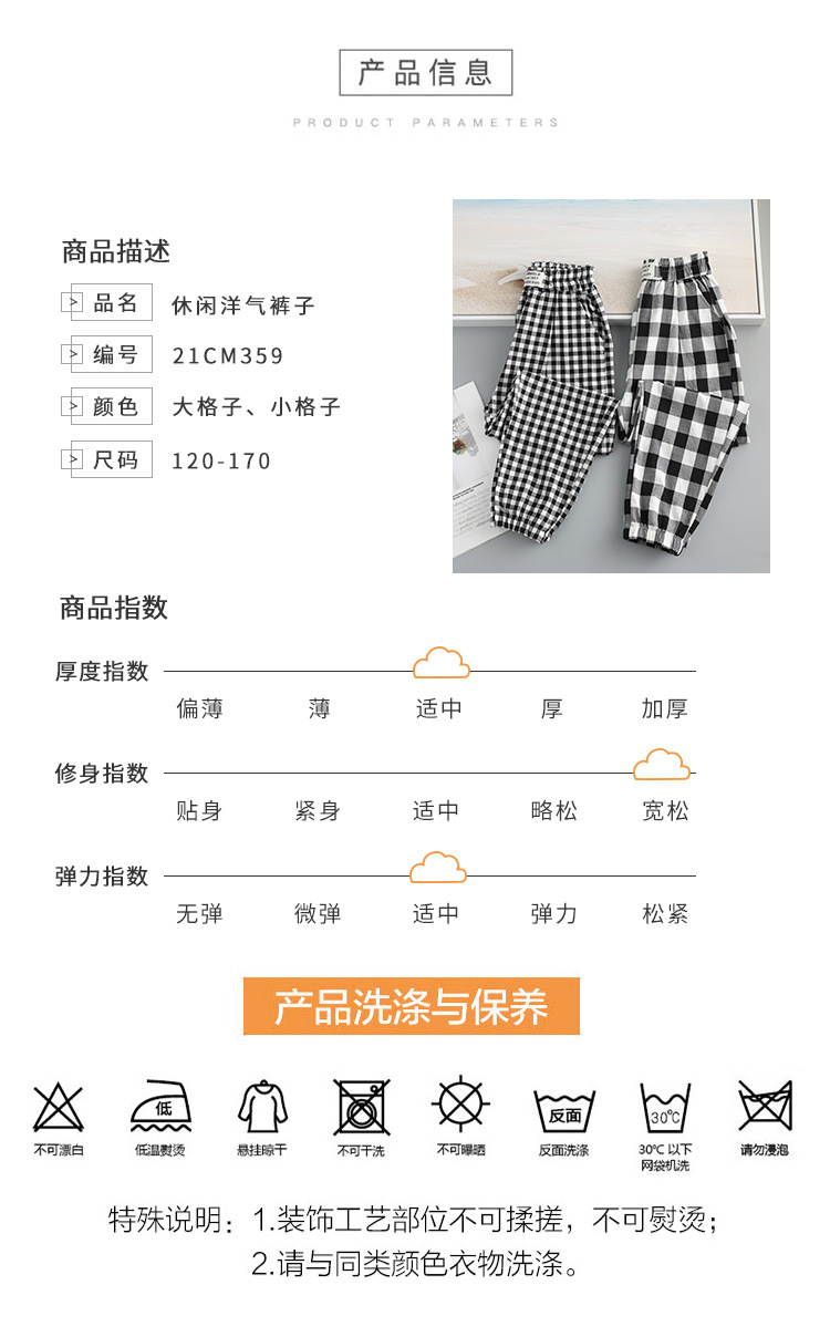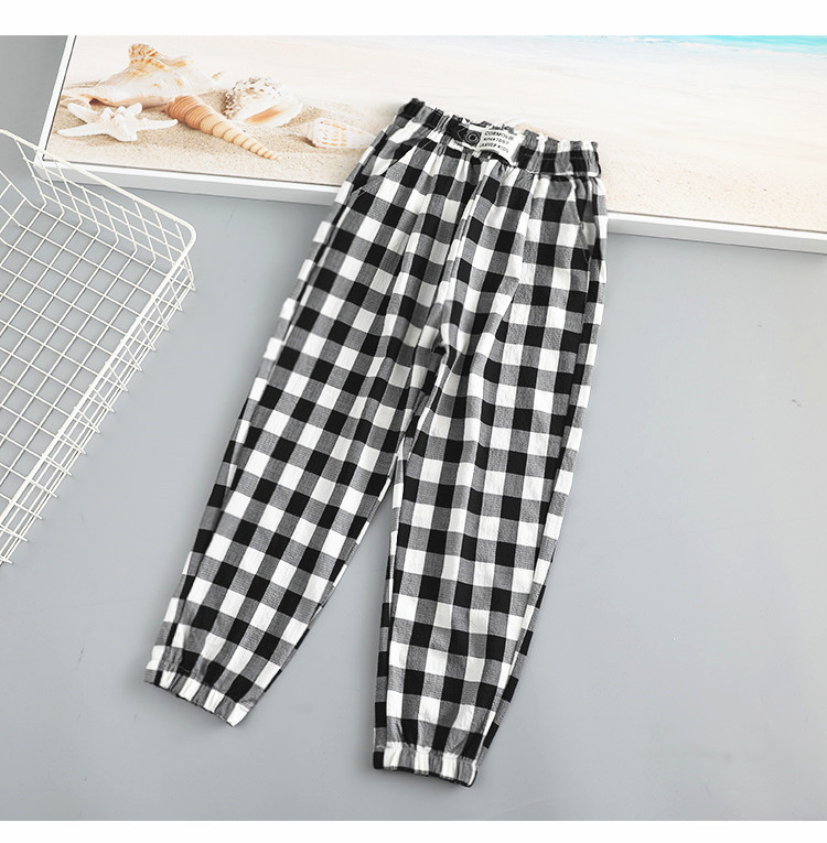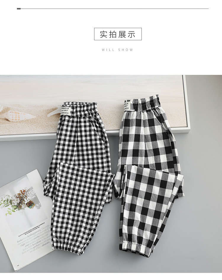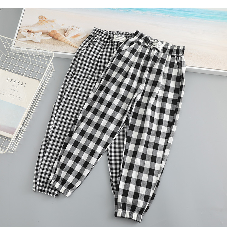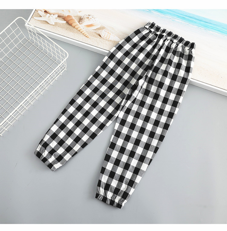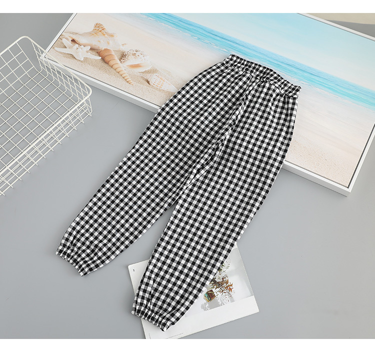 Girls' plaid casual pants, spring and autumn thin mosquito-proof pants, loose sports pants, stylish and versatile pants for middle and large children, trendy
