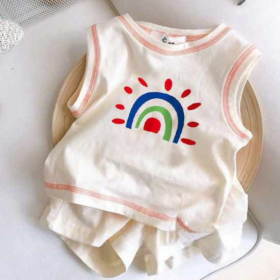 Girls' pure cotton summer and children's clothing 2022 new style Stylish and cool children's short-sleeved T-shirt two-piece set for boys