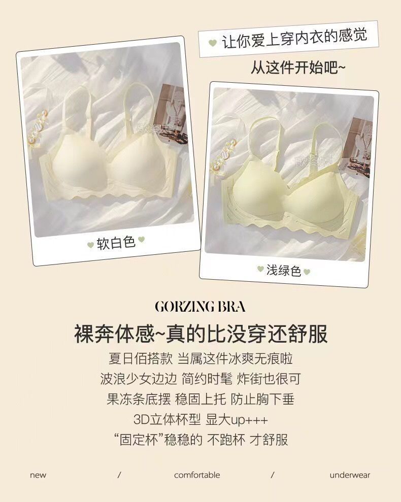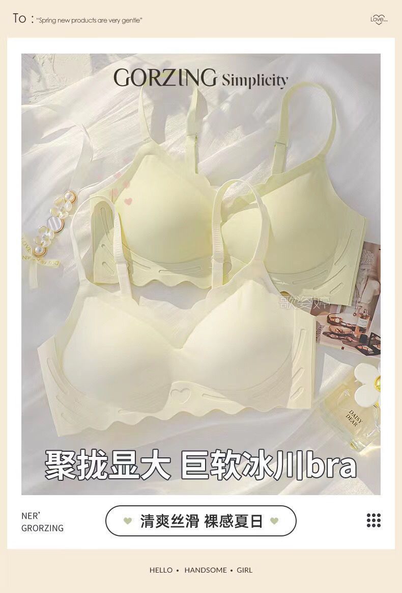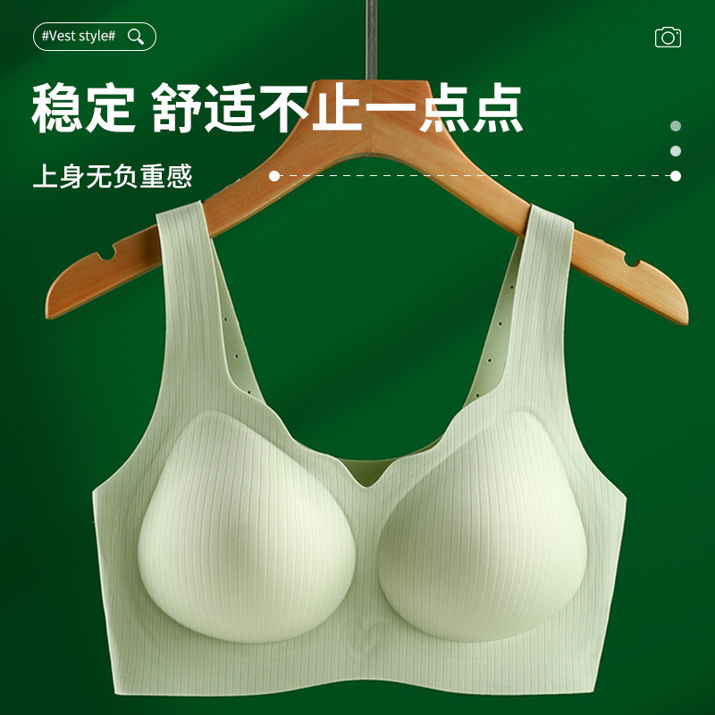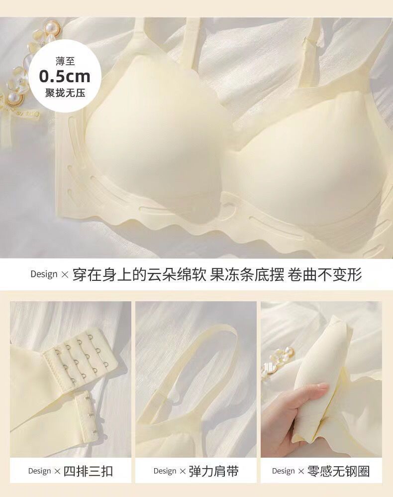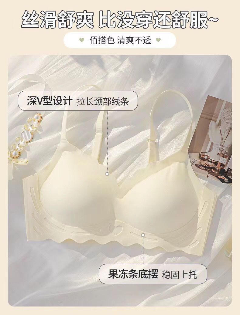 Women's seamless lingerie, thin, frameless jelly strip bra, gathering breasts, tapering breasts, large bust, and slimming vest style bra