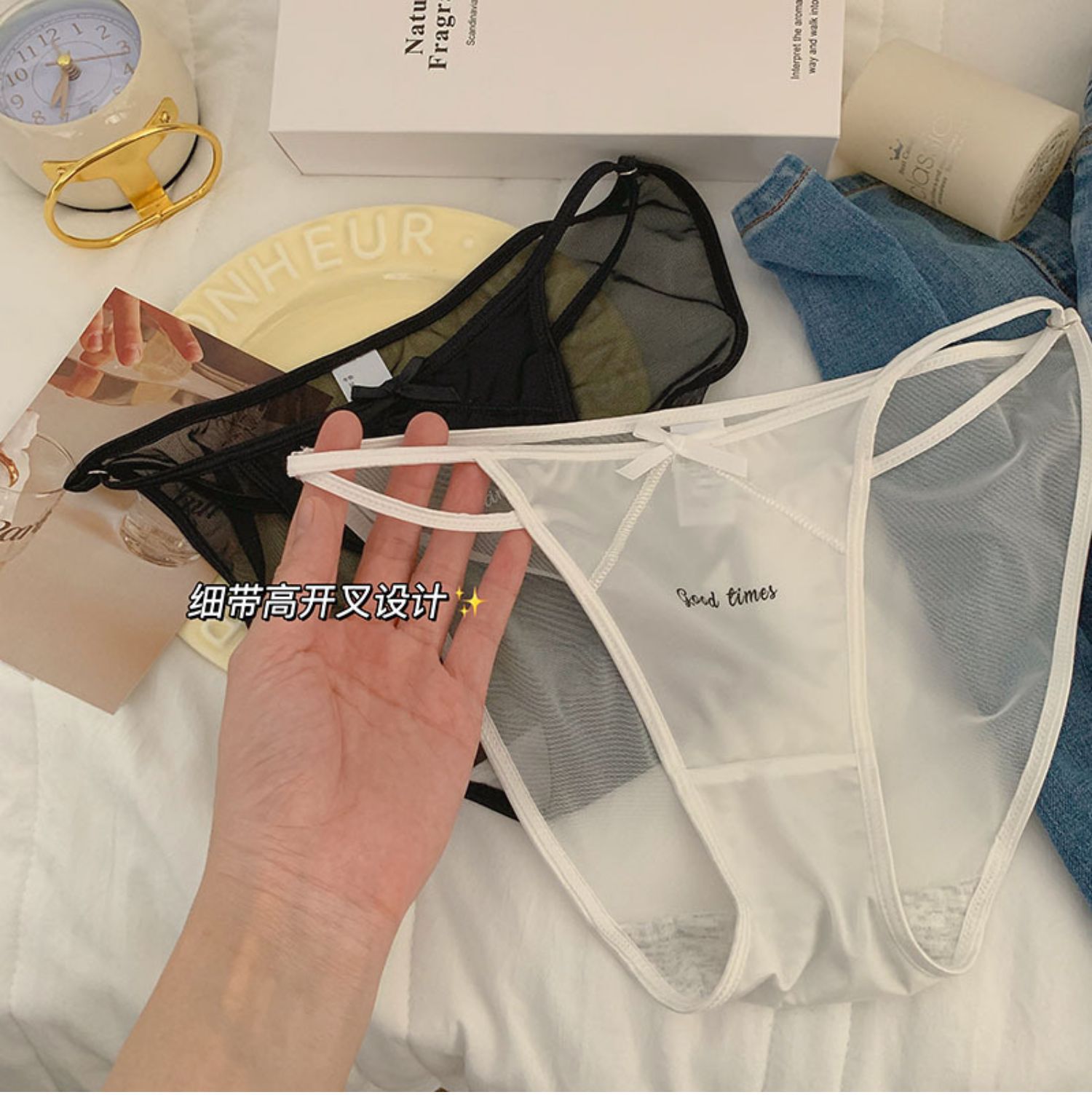 Sporty waist ~ Sexy and hot girl underwear for women's summer, thin and sexy mid-waist, new lace-up pure cotton crotch