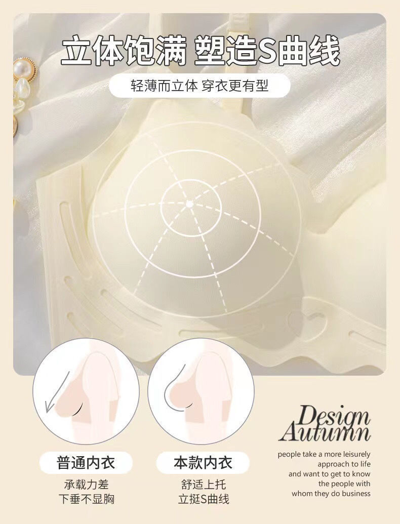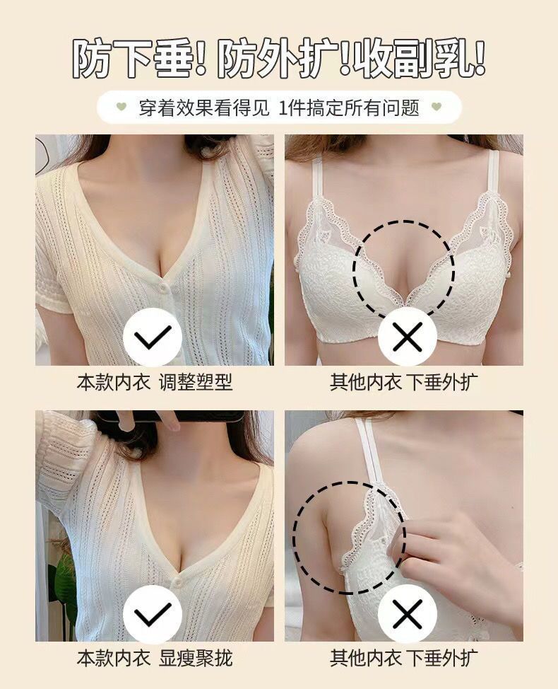 Seamless lingerie for women, small breasts appear larger, gathering anti-sagging, adjustable soft support, outward-expanding sports one-piece bra