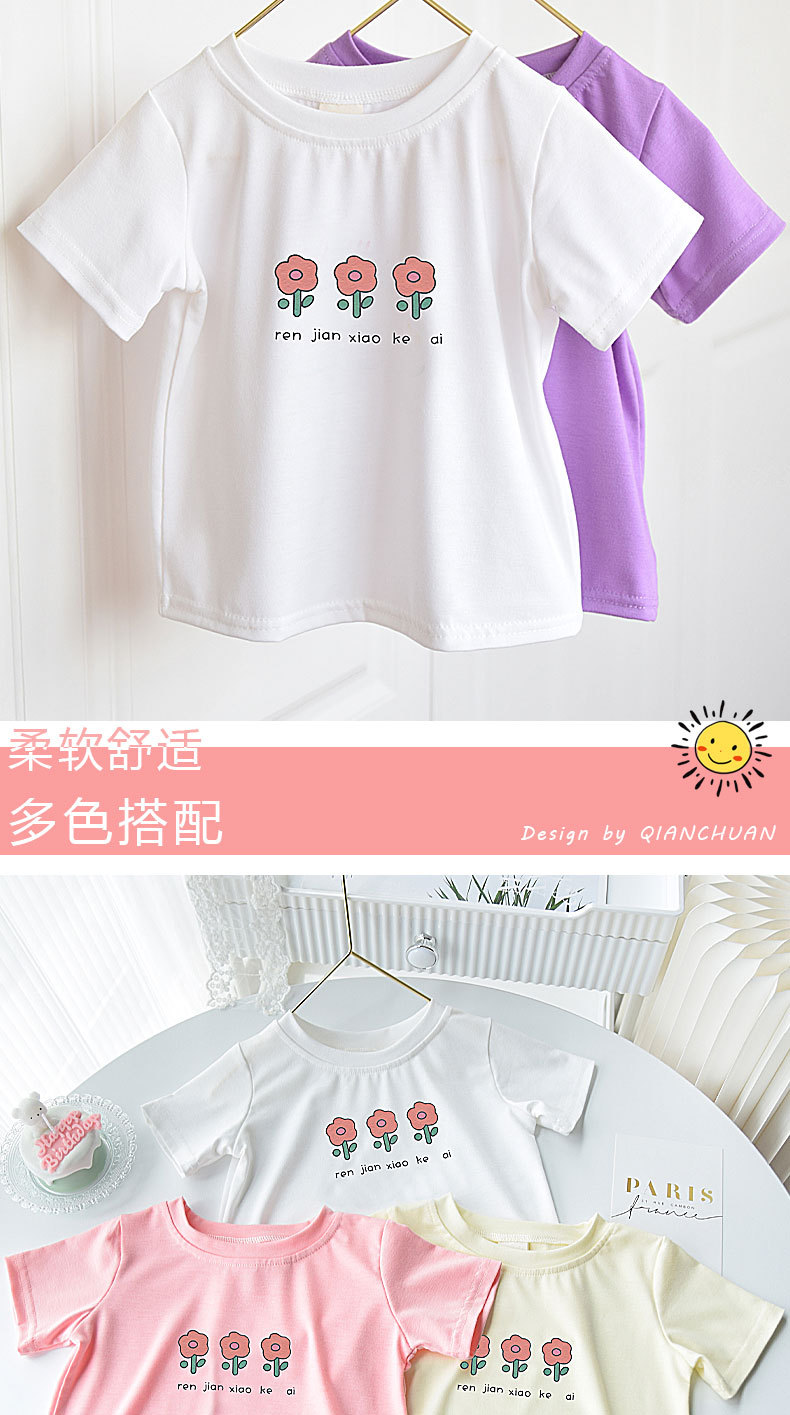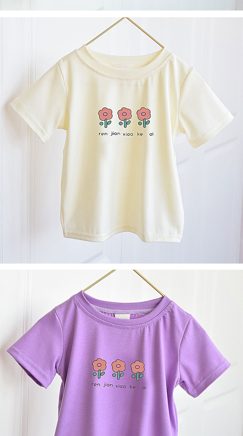 Girls' short-sleeved T-shirt summer cartoon print 2024 new style children's loose, thin and versatile round-neck children's clothing top