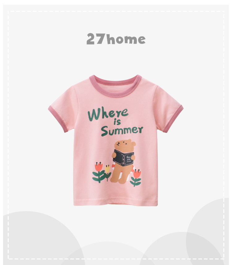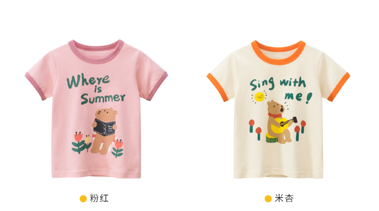 Girls' short-sleeved T-shirts for summer 2024 new style, casual and stylish little bear children's clothing, half-sleeved, one-piece consignment