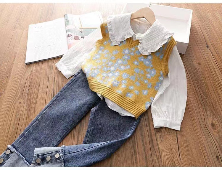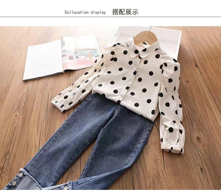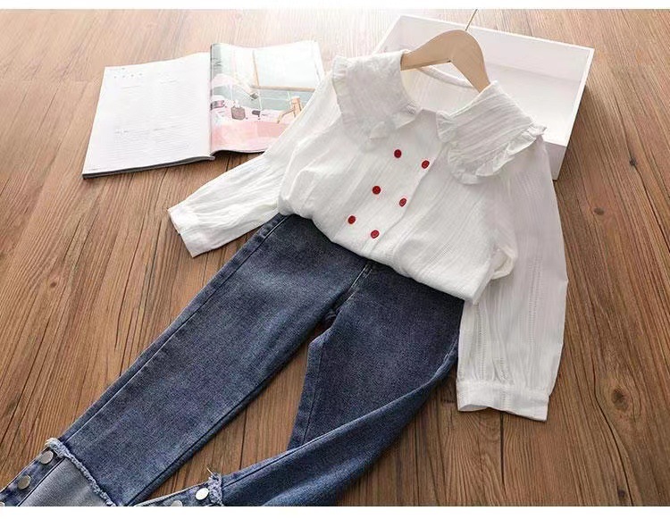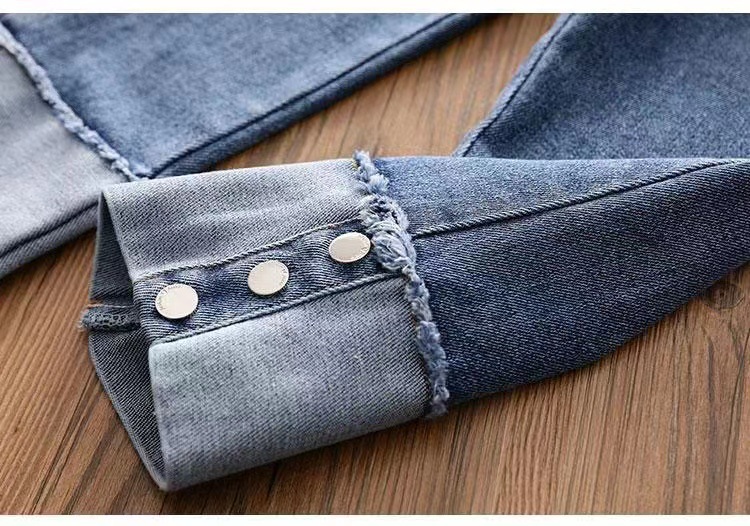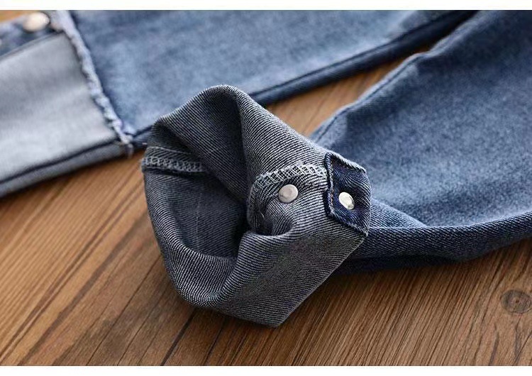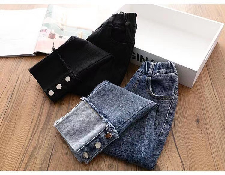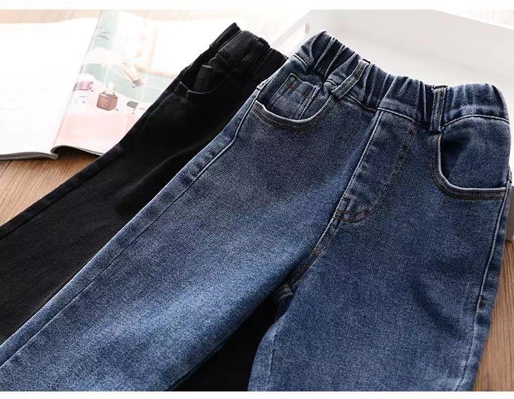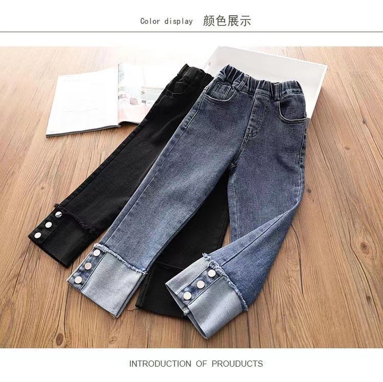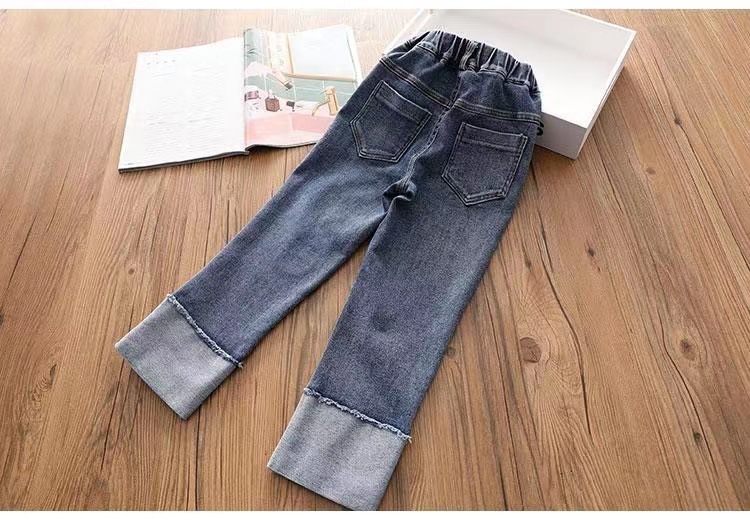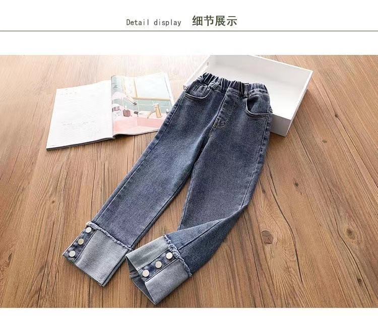 Girls' stylish jeans, Spring and Autumn 2022 New Korean version, high-waisted straight-leg pants for children, children's riveted pants