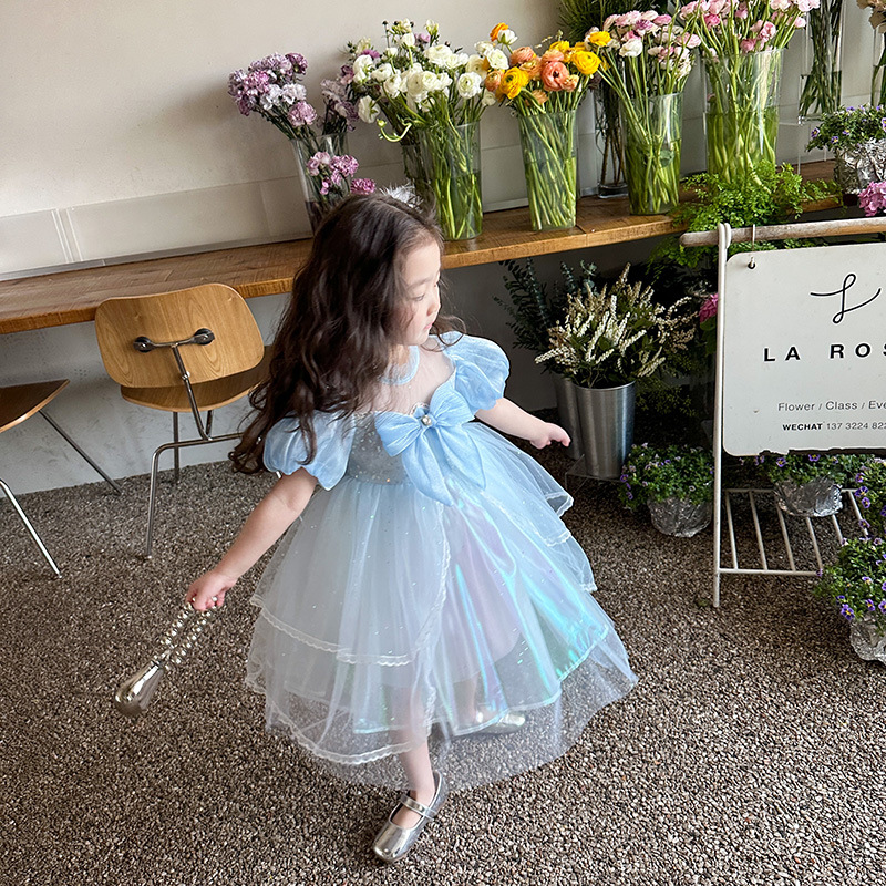 Girls' summer dress 2023 New style Children's bow bow Little and middle school girls' stylish princess dress performance outfit