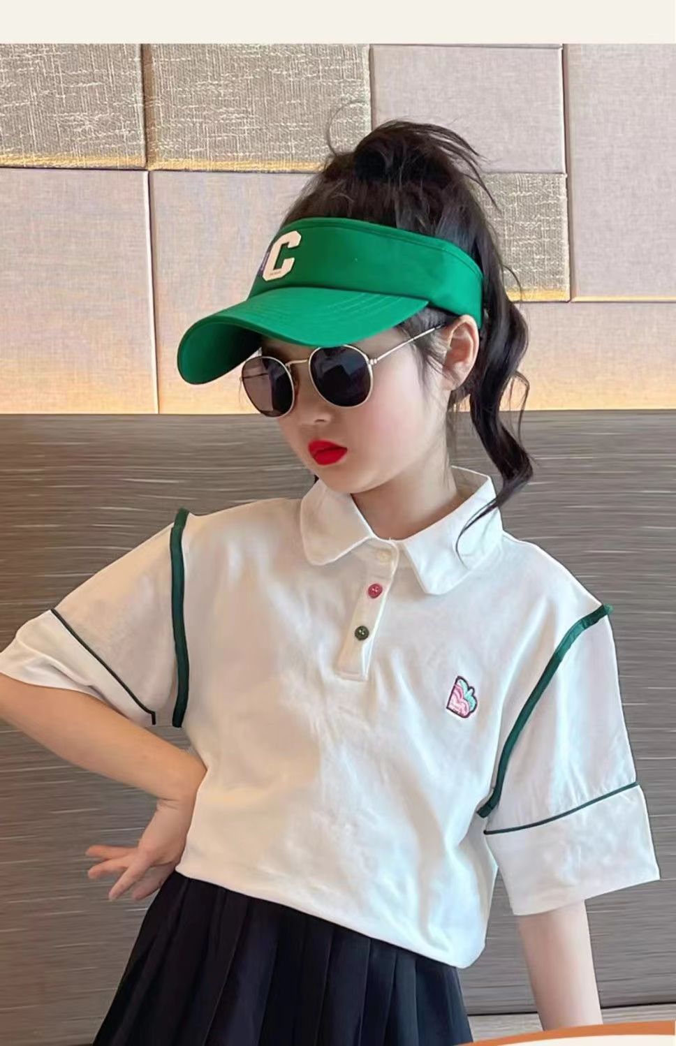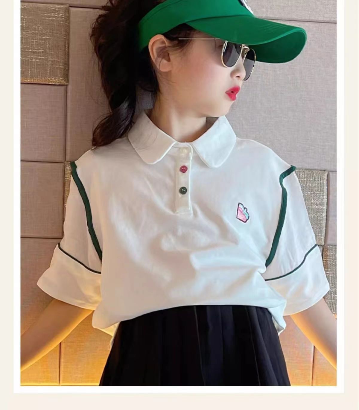 Girls' T-shirt short-sleeved set for summer 2024, new children's white polo shirt, cool and trendy summer outfits for older girls