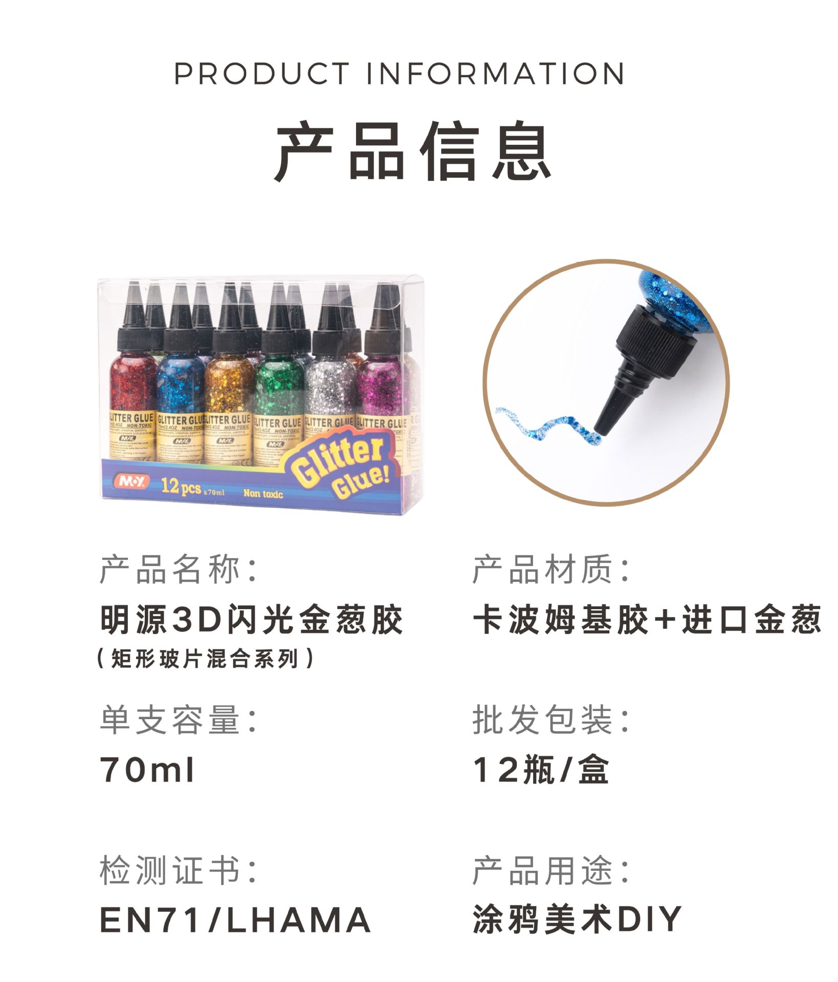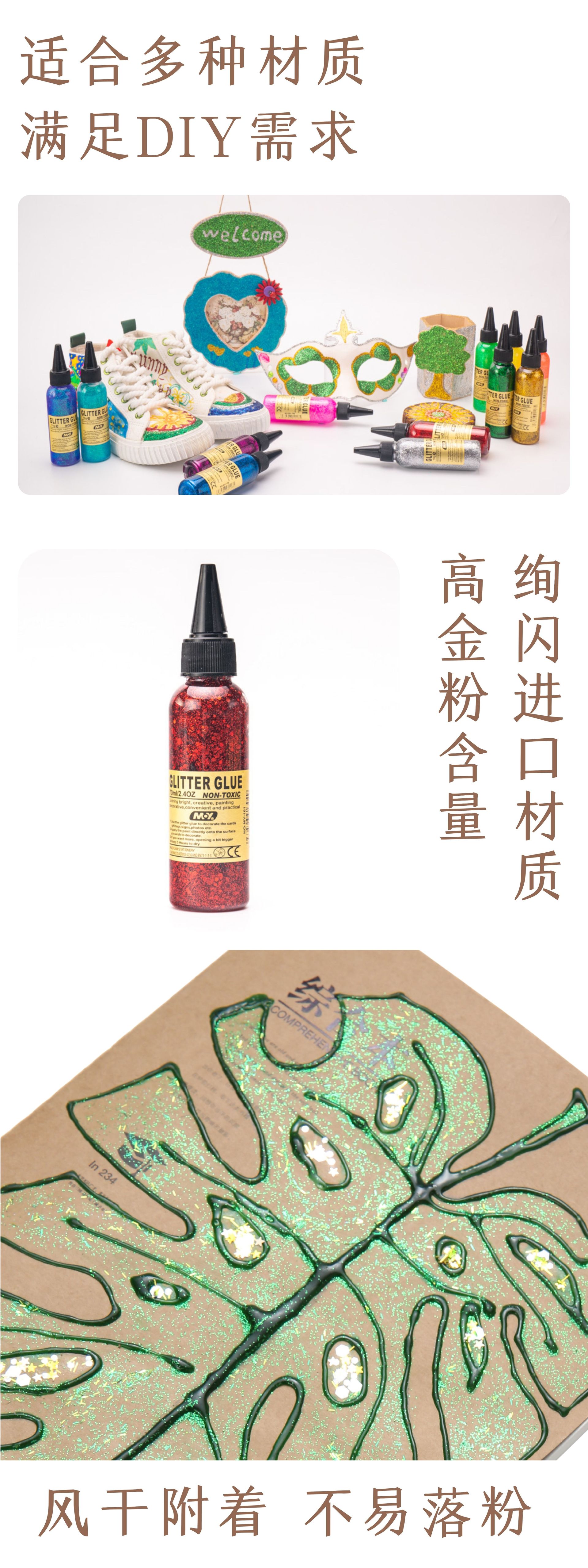 Glitter glue painting coloring gold onion diy children's greeting card art paint glue pen decoration soft clay non-baking glitter powder