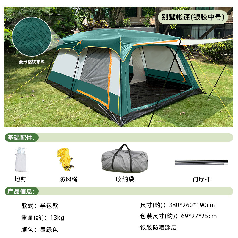 Military green all-inclusive medium size silver gel rain and sun protection [5-8 people]