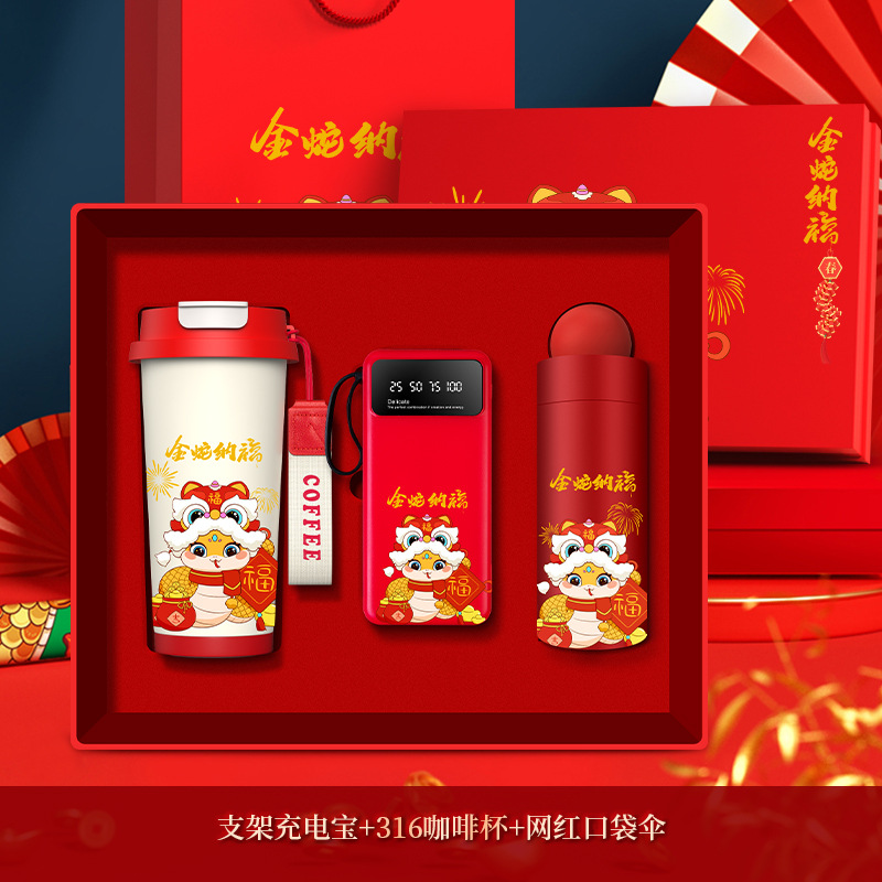 Golden Snake Blessing Special Edition [Lily of the Valley Cup + Internet-Famous Umbrella +A5 Notebook +3C Stand Power Bank] - Red