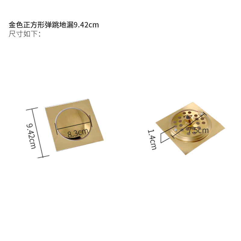 Golden stainless steel bouncing floor drain, bathroom foot-operated anti-odor floor drain, bathroom sealed floor drain