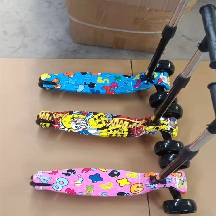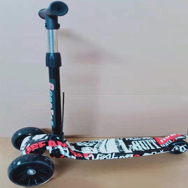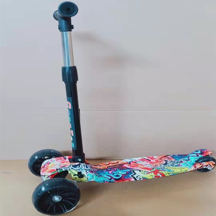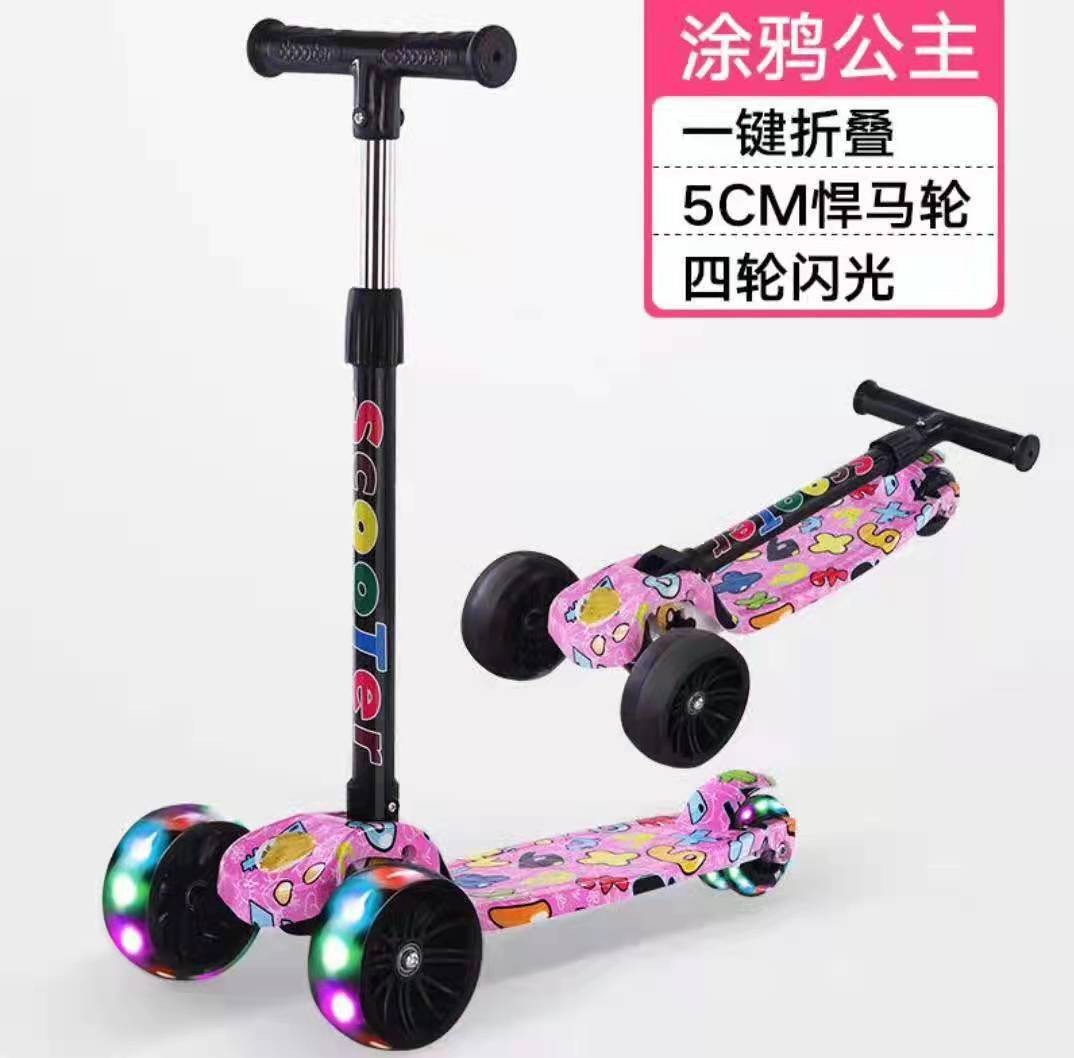 Graffiti children's scooter, folding four-wheel, flashing, sliding, three-speed adjustable Hummer wheel, one-button folding scooter