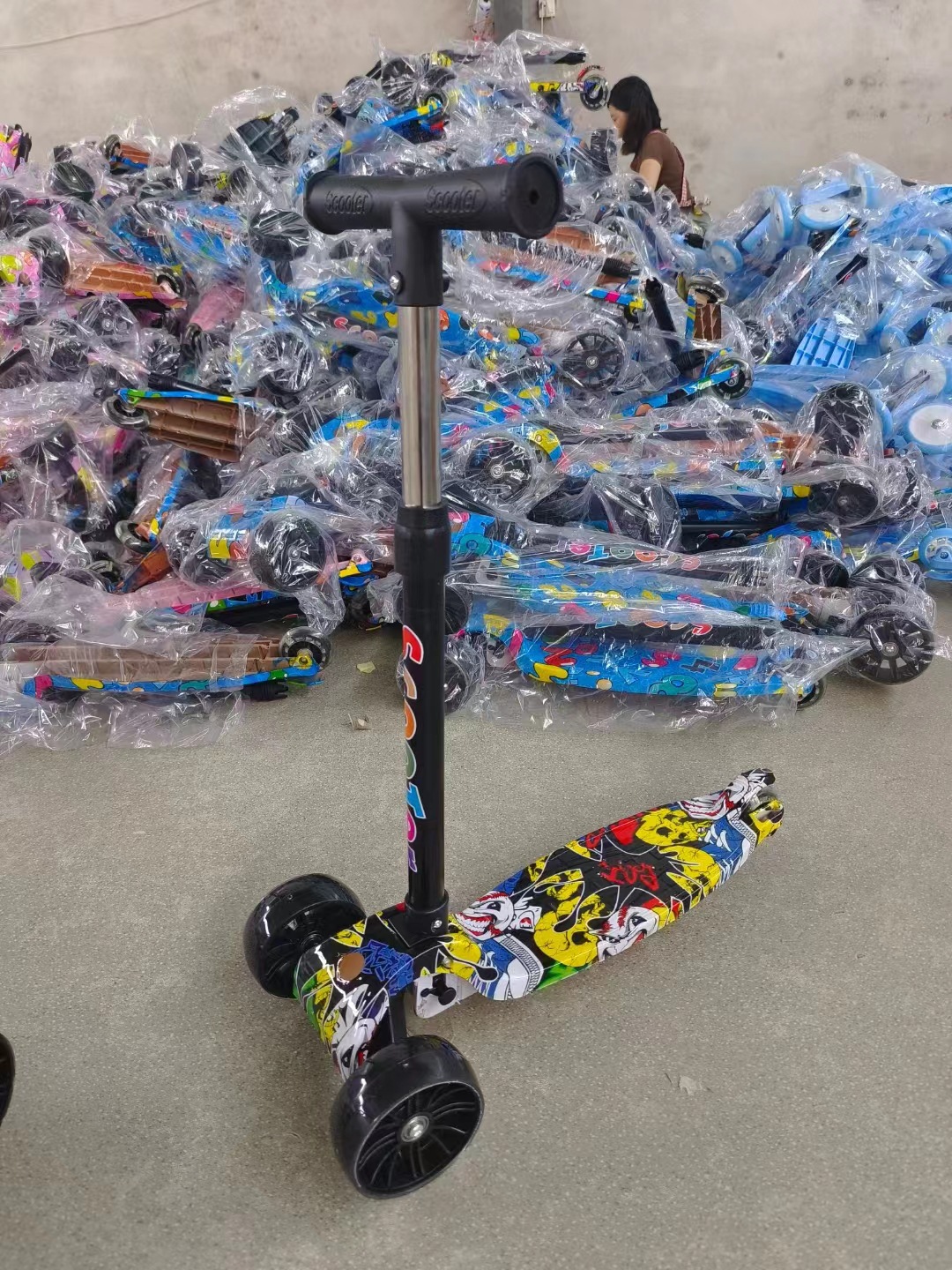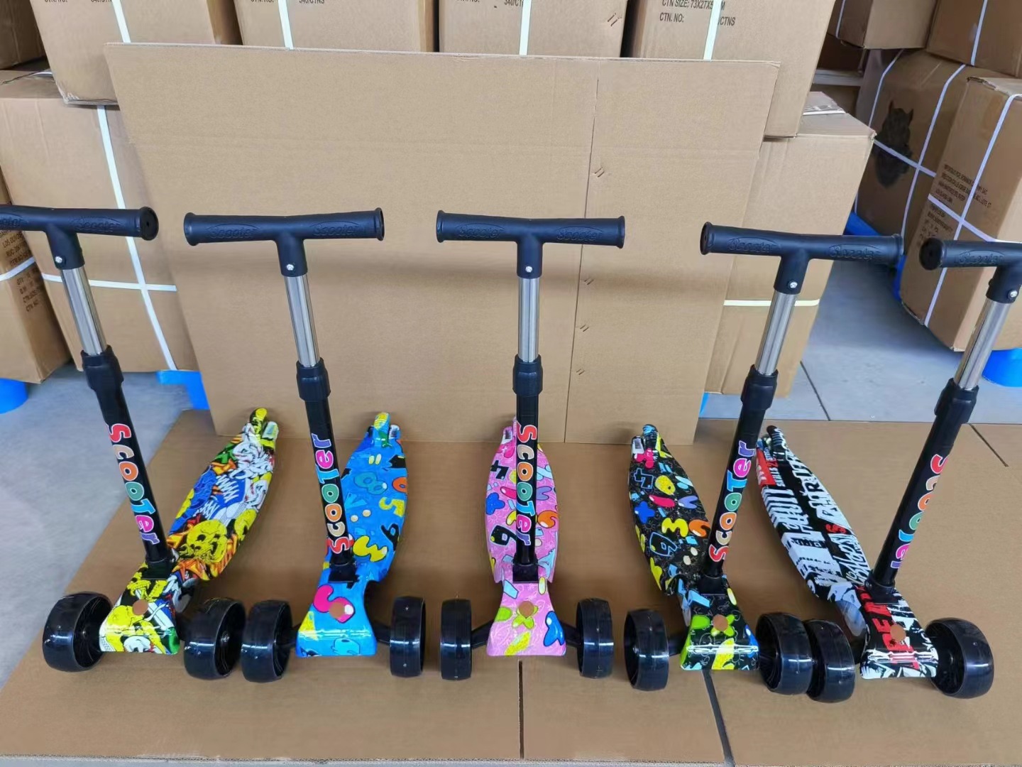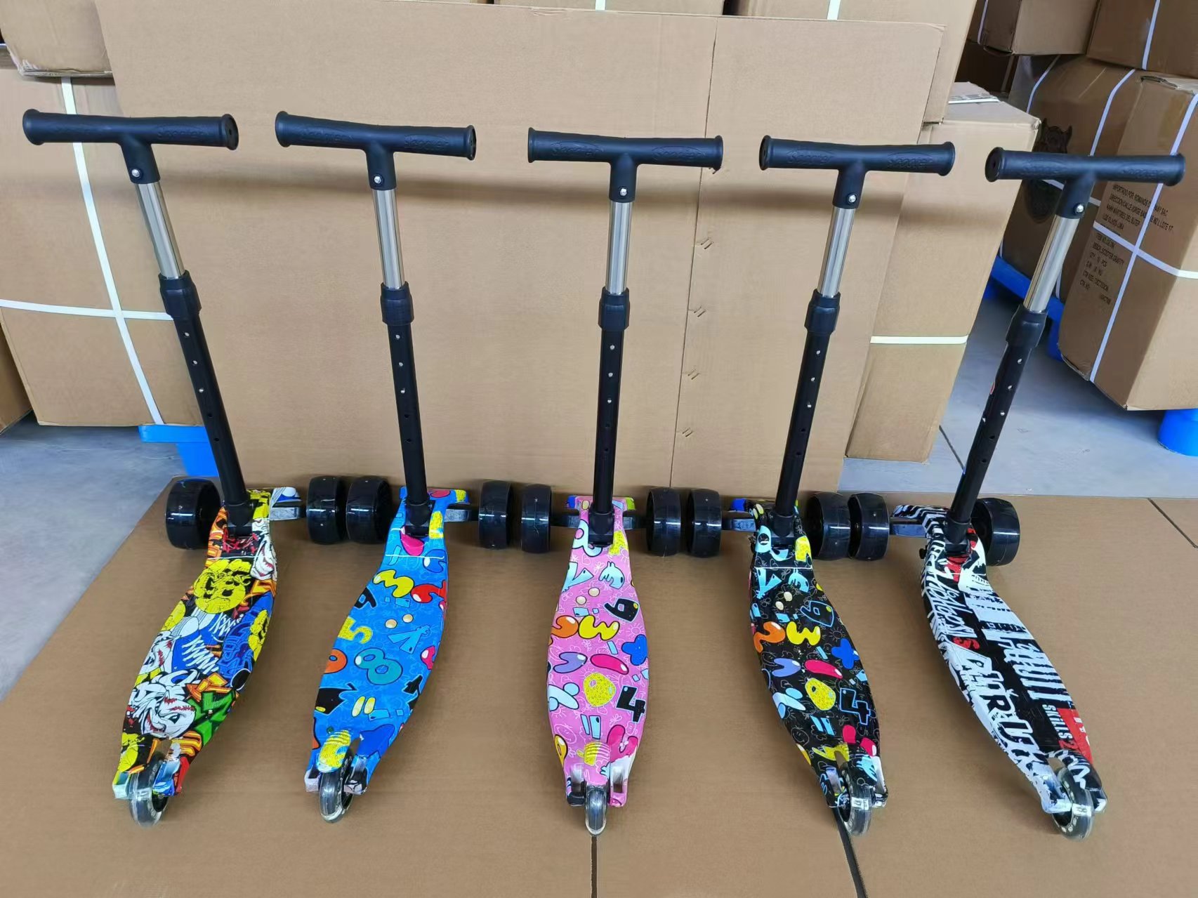 Graffiti children's scooter, folding four-wheel, flashing, sliding, three-speed adjustable Hummer wheel, one-button folding scooter