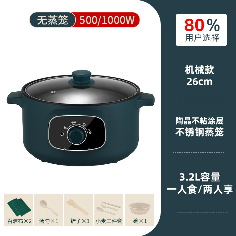 Green electric cooking pot, multi-functional integrated household electric hot pot, dormitory student pot, small electric pot for cooking noodles in dormitories, stir-frying pot