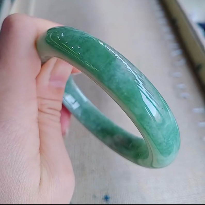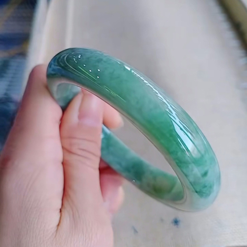 Green jade bracelet, ice glutinous type Burmese jade bracelet, oil blue women's jade bracelet, floating green, direct delivery from the manufacturer