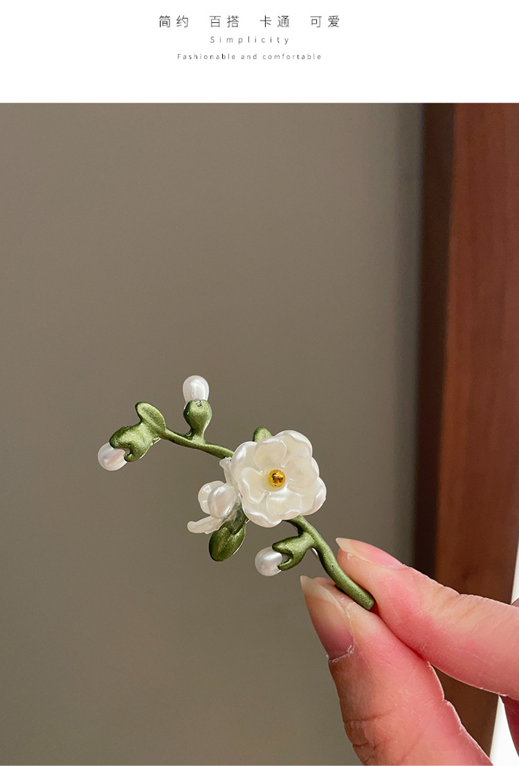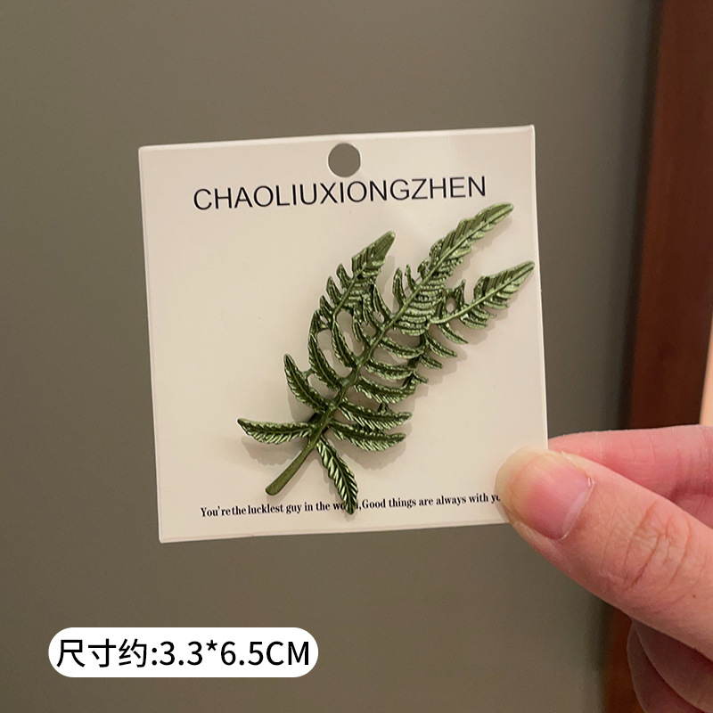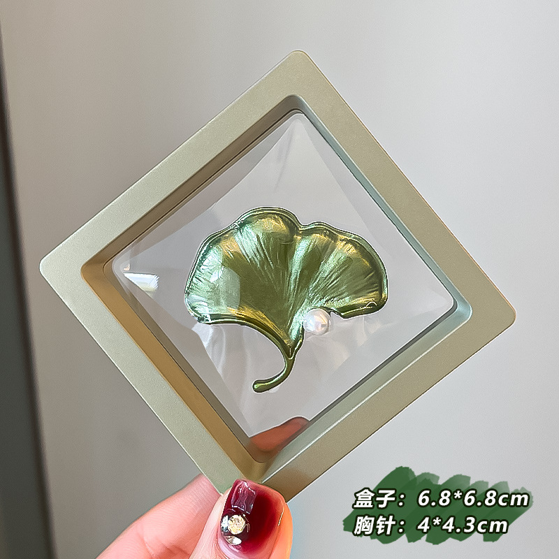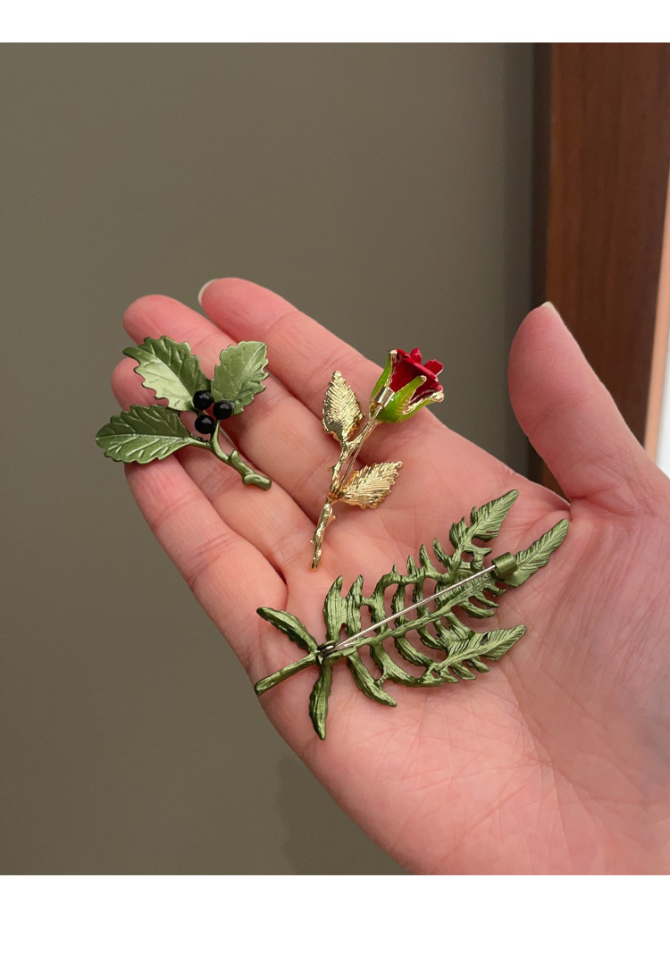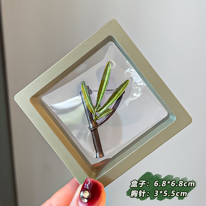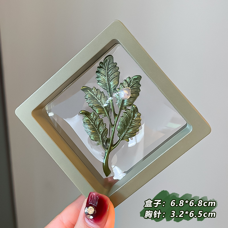 Green plant flower brooch, pearl anti-glare pin accessory, high-end women's fresh and delicate suit brooch decoration