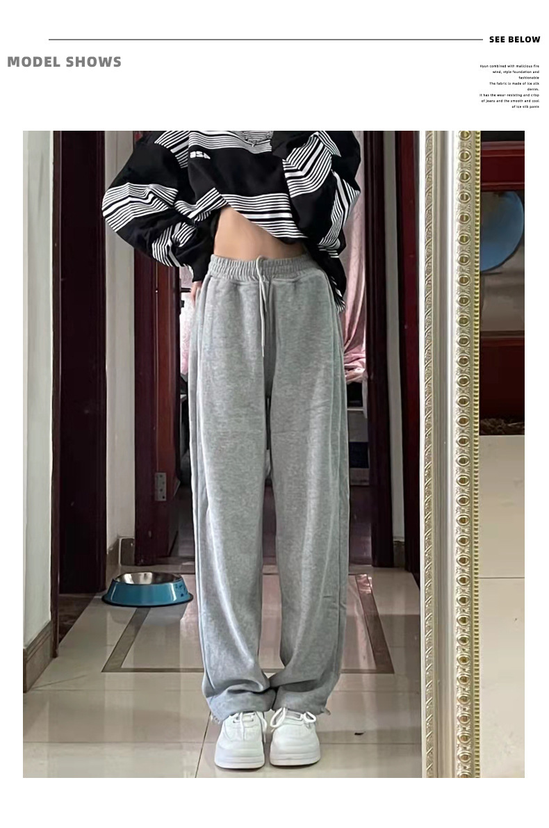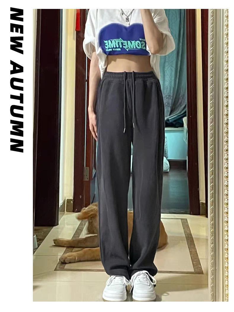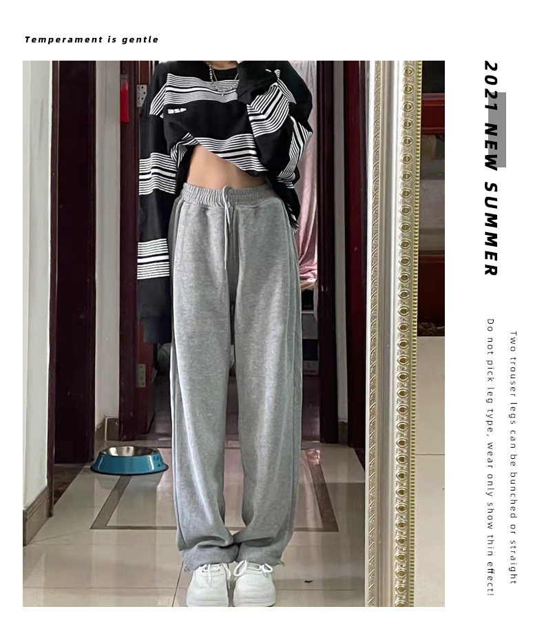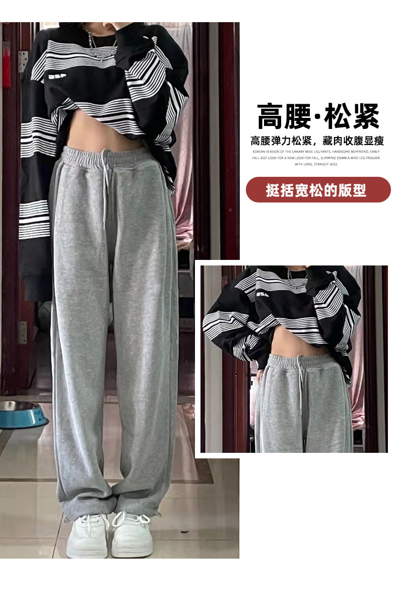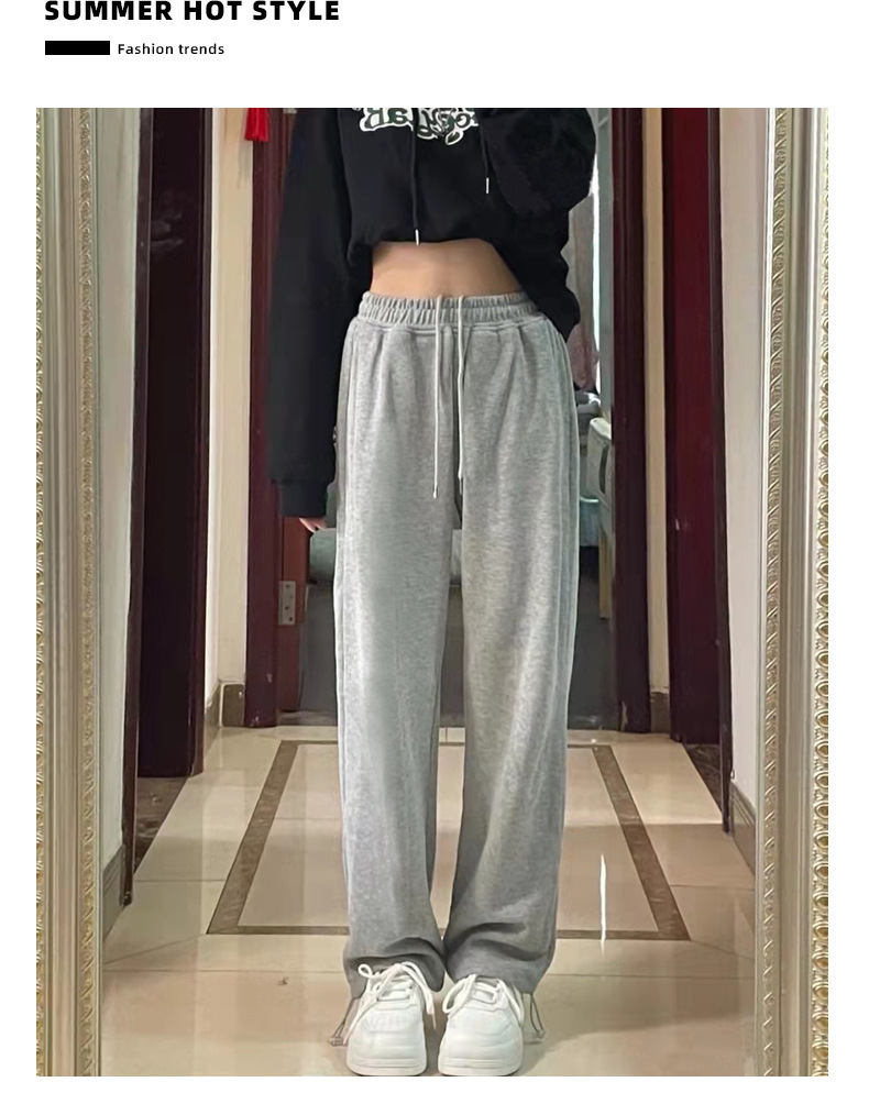 Grey sports pants, women's petite casual wide-leg pants, loose slimming tight-fitting sweatpants, women's long pants, one-piece consignment