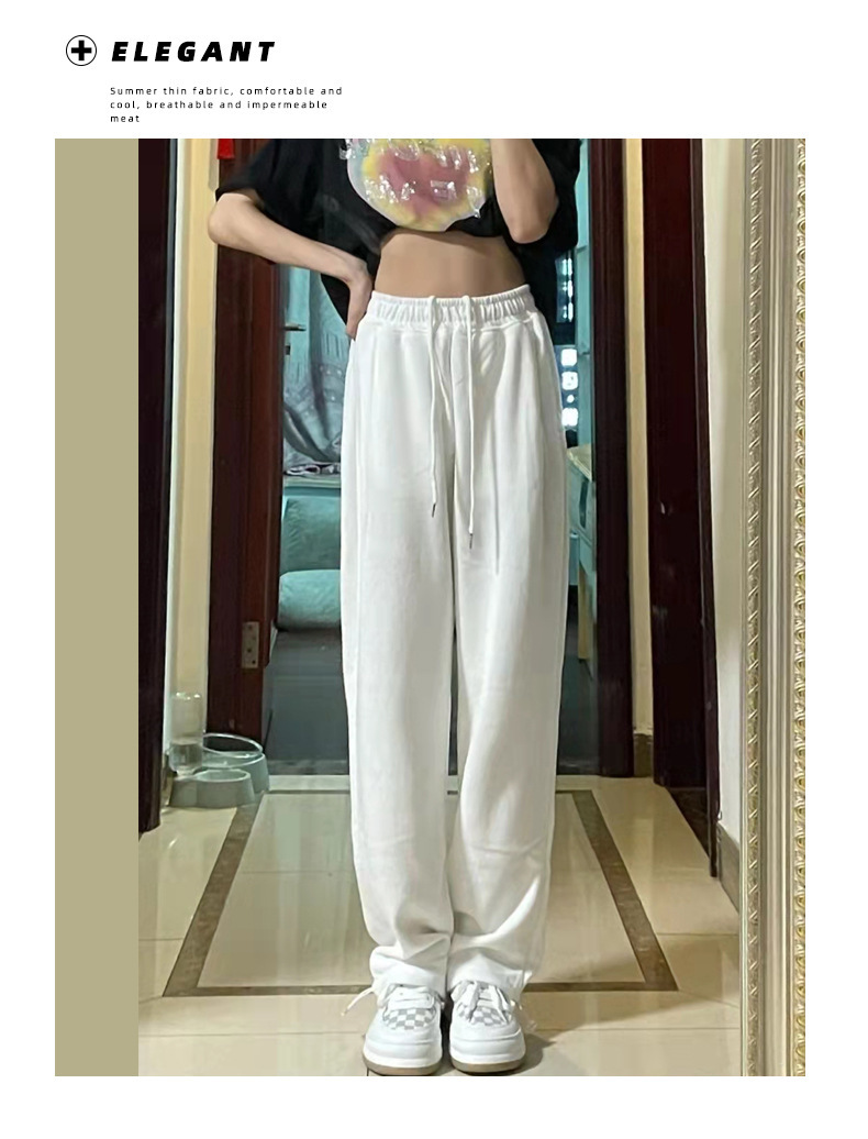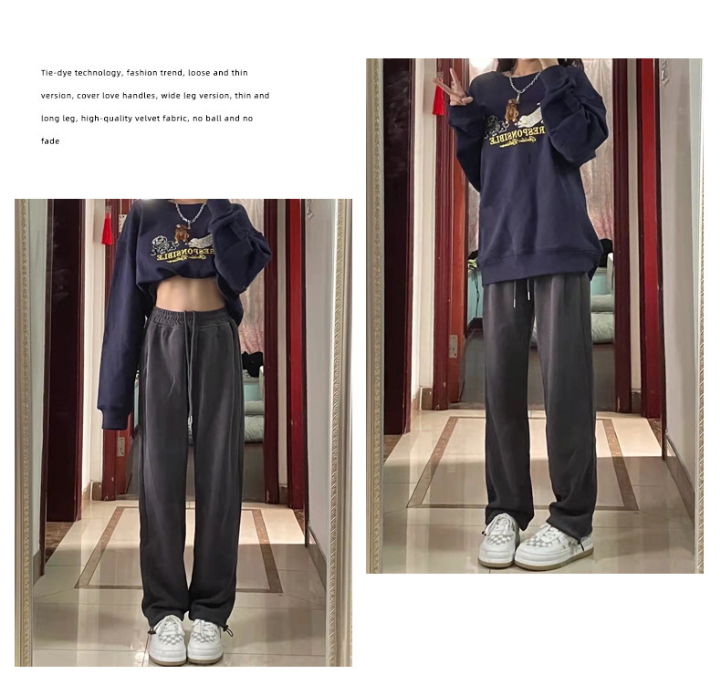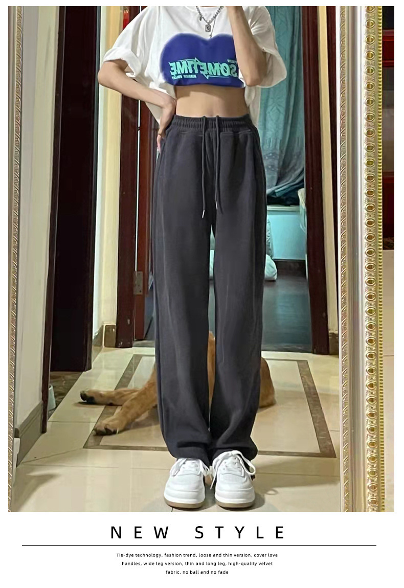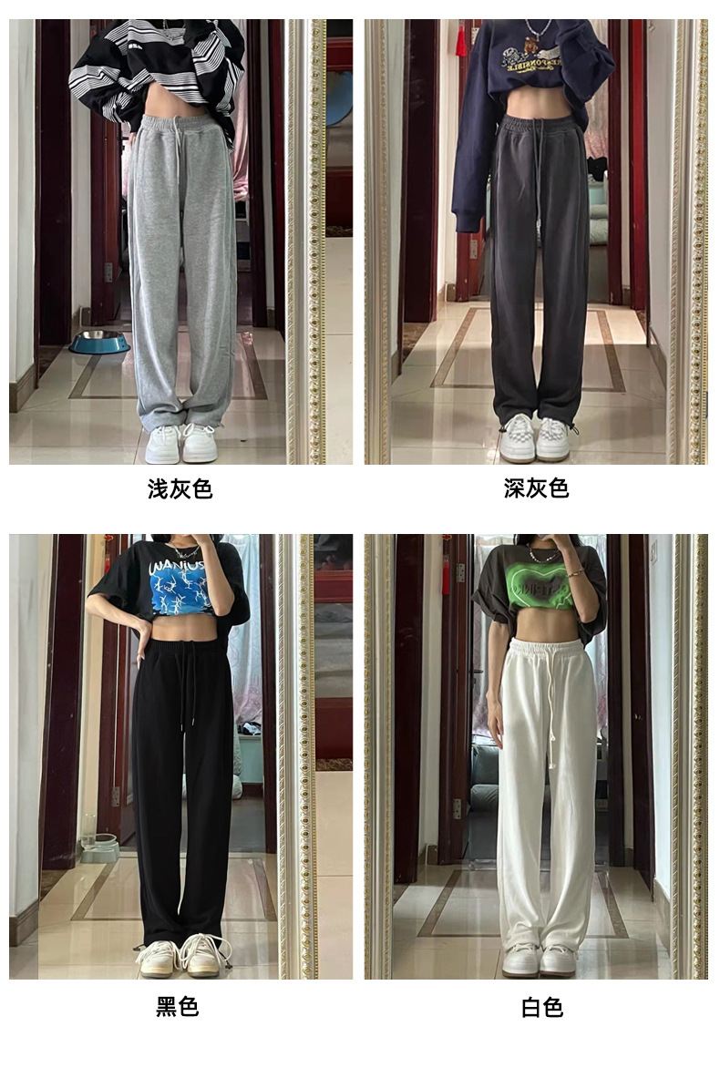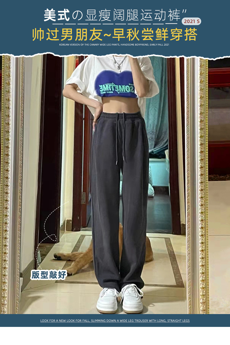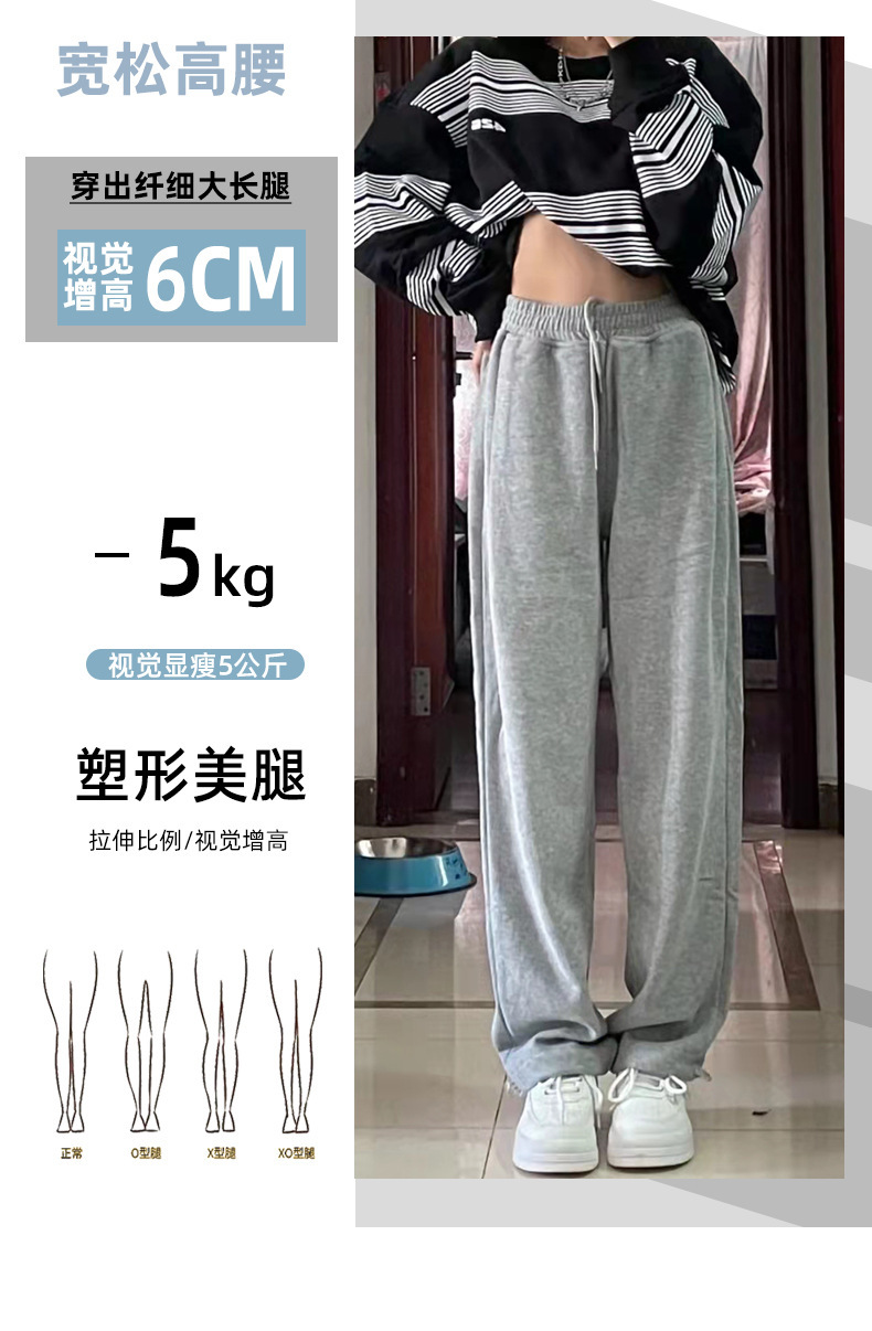 Grey sports pants, women's petite casual wide-leg pants, loose slimming tight-fitting sweatpants, women's long pants, one-piece consignment