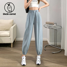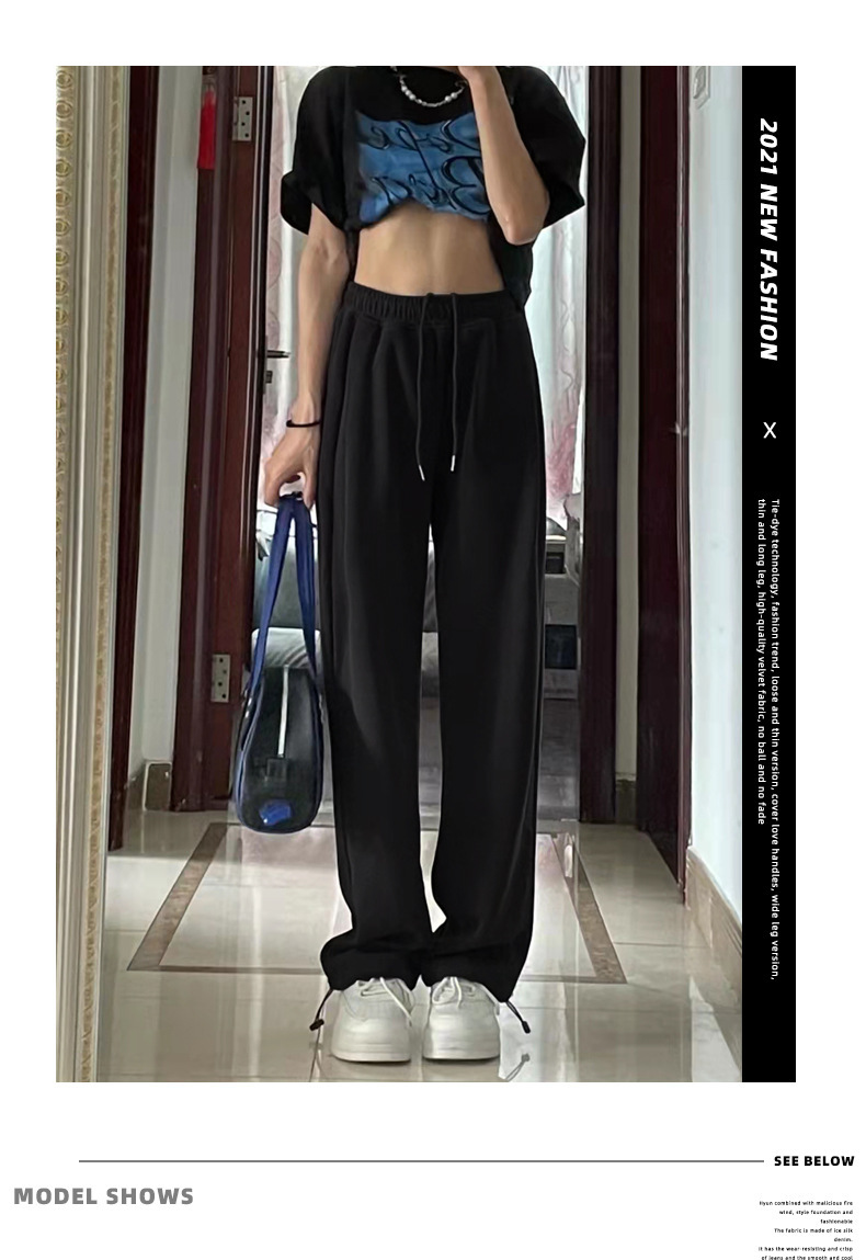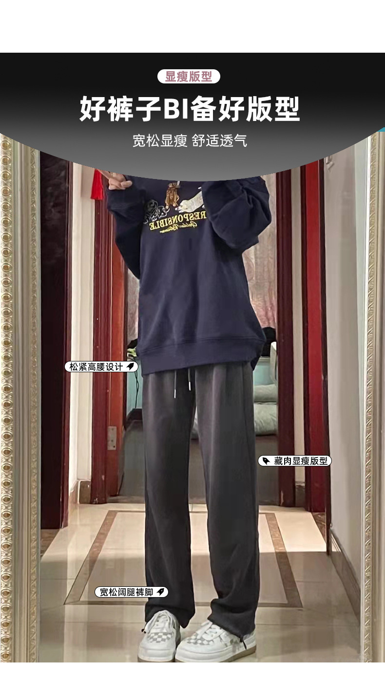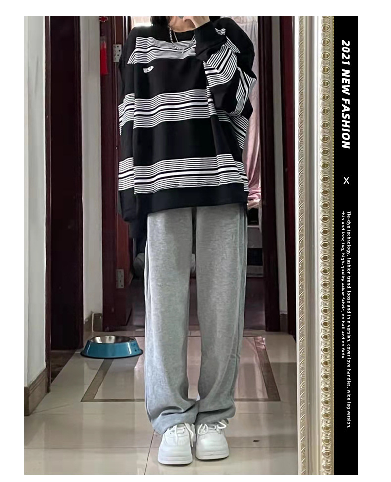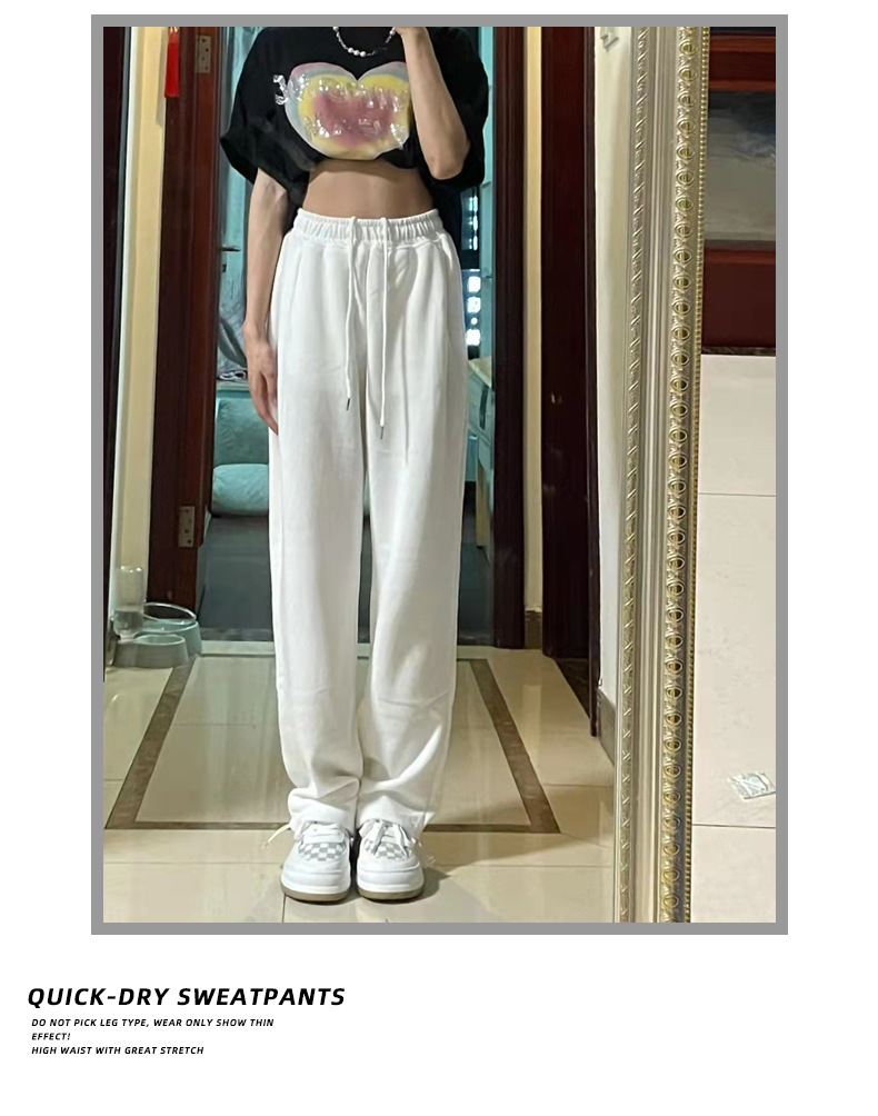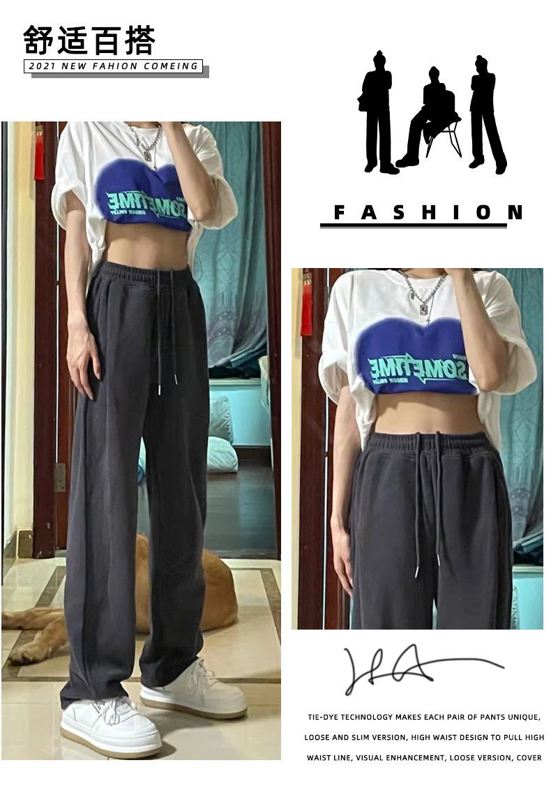 Grey sports pants, women's petite casual wide-leg pants, loose slimming tight-fitting sweatpants, women's long pants, one-piece consignment