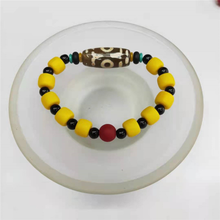 The earliest natural dzi beads were made by polishing conch fossils. Later, due to the scarcity of fossils, ancient Tibetans began to use a sedimentary rock containing jade and agate components to polish dzi beads. This sedimentary rock has a very strong magnetic field, and the naturally formed regular patterns are mainly eyeballs, supplemented by triangles, quadrilaterals, etc. It is said to ward off evil spirits.
