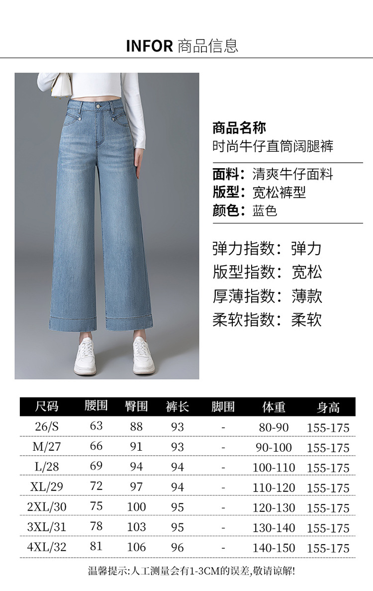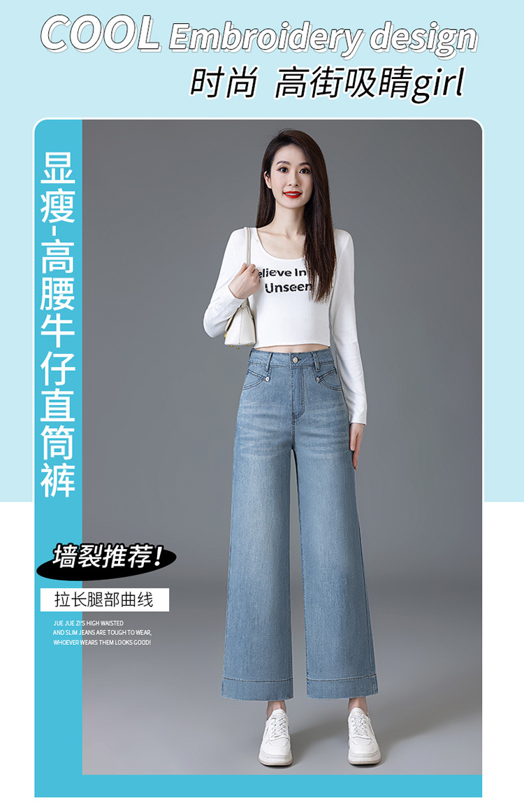 Guangzhou Xintang Jeans Official Flagship Store Women's Summer Versatile Pants 2025 New Style Thin wide-leg 9-point
