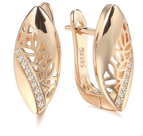 Gulkina cross-border e-commerce supply 585 purple gold 18k electroplated real gold earrings, fashionable earrings, stud covers, decorative women's earrings, retro hollowed-out earrings, Russian trade jewelry wholesale