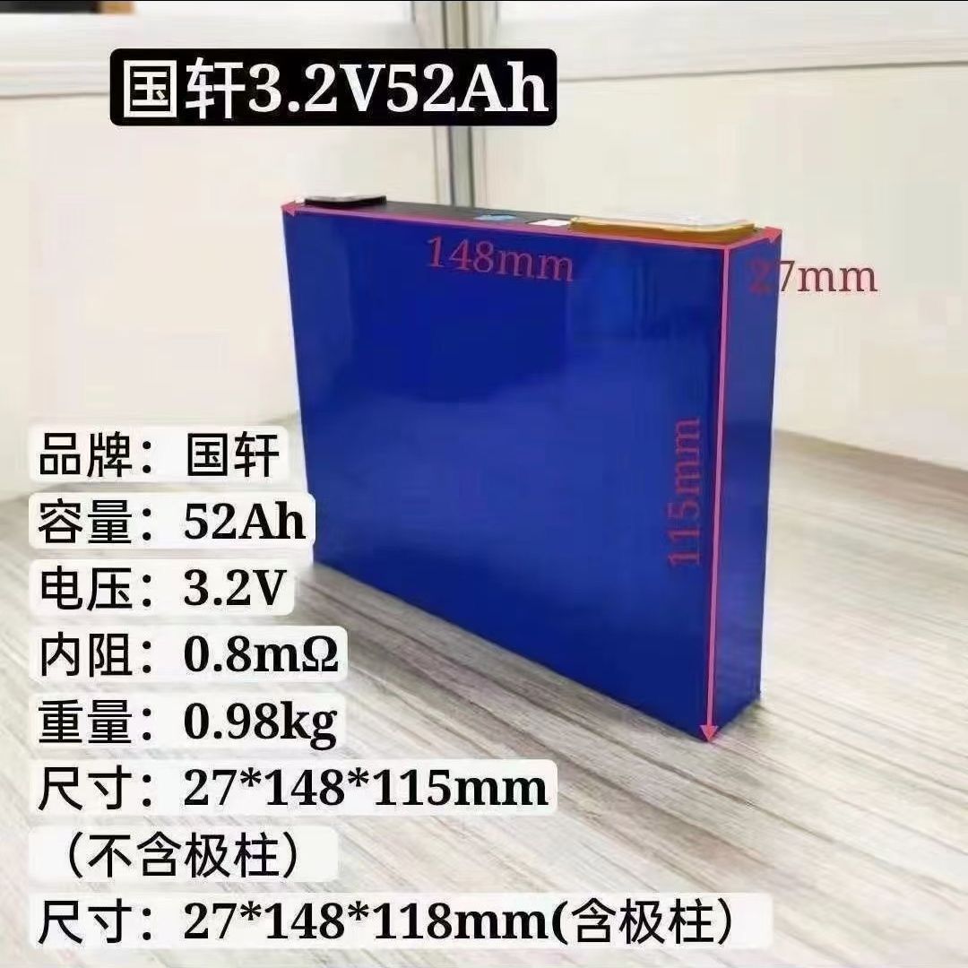 Guoxuan's brand-new A-grade lithium iron phosphate block battery, 52Ah, is A lithium battery for energy storage, power electric vehicles, mobile phones, digital accessories, and electrical appliances