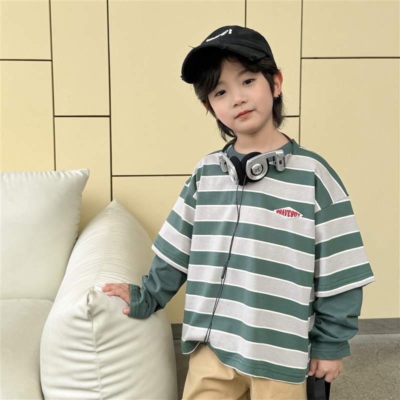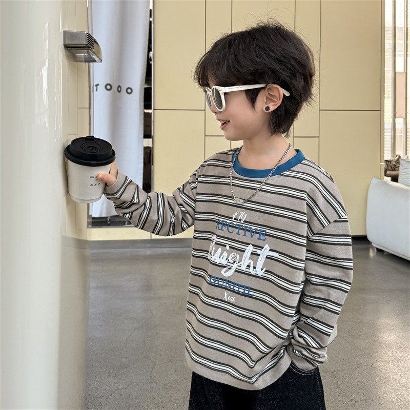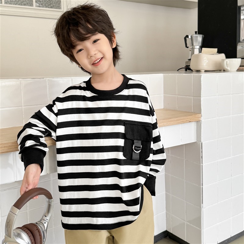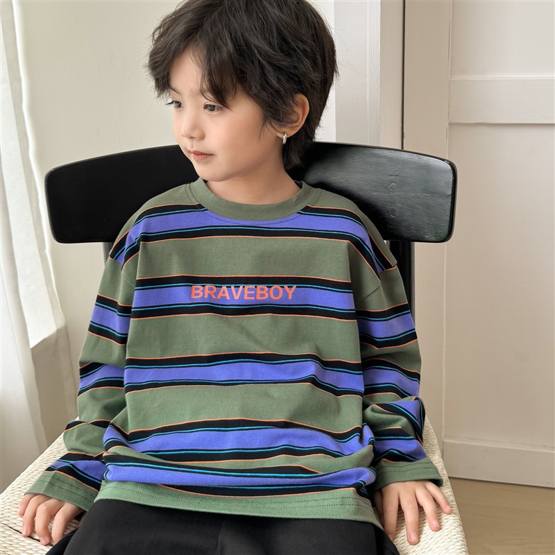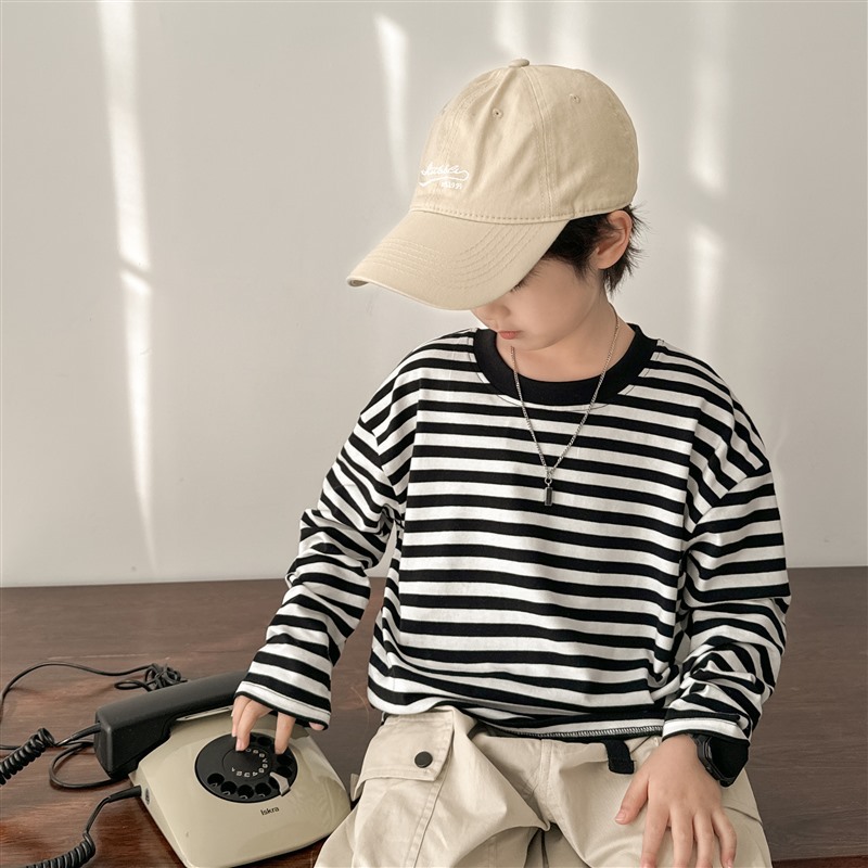 Hai Ma's long-sleeved T-shirt, striped top, children's autumn 2025 new style base layer, pure cotton thin children's clothing