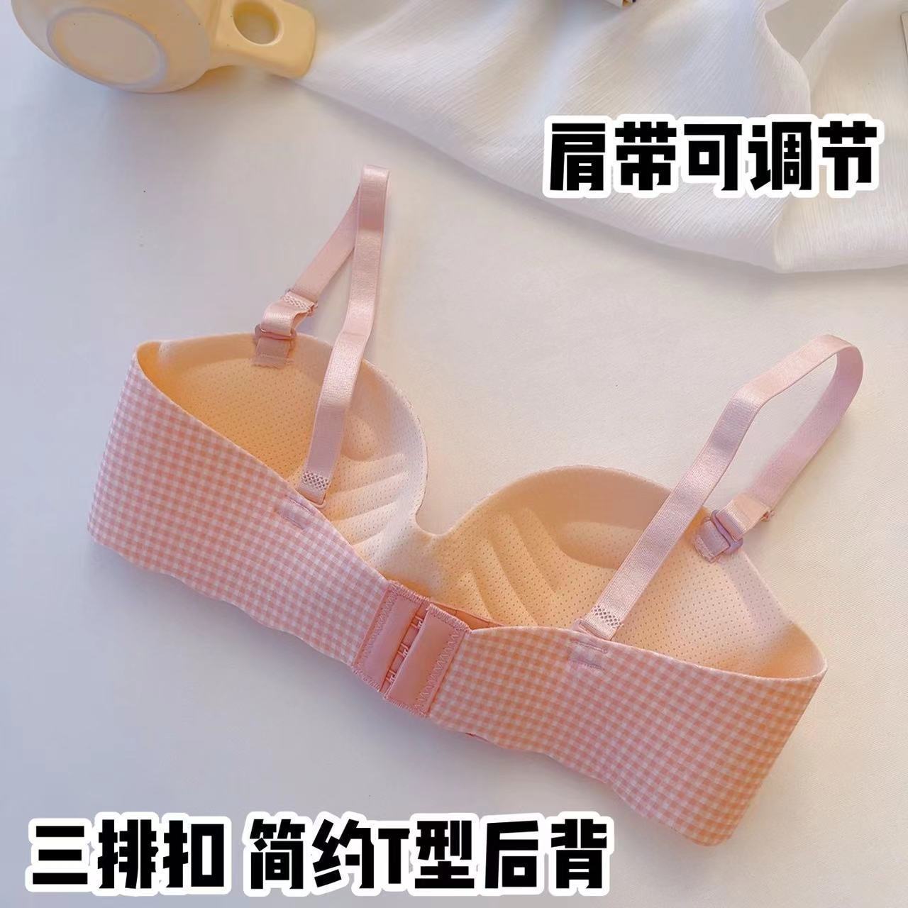 Half-cup checkered girls' underwear, one-piece palm cup, traceless small breast, gathering bra without underwire, student bra