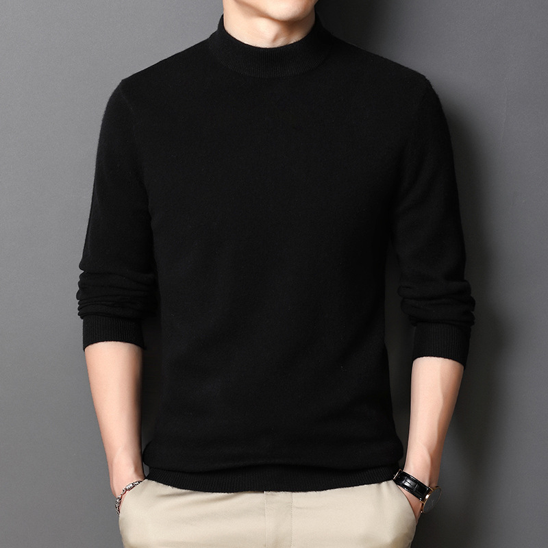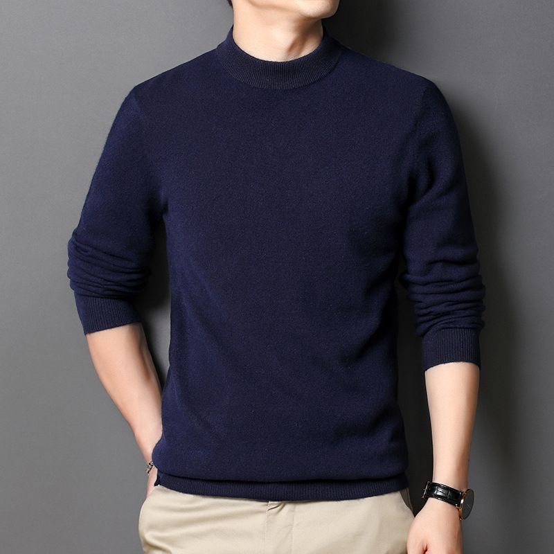 Half-height thick round-neck men's sweater, 100% wool for warmth, solid color pullover wool sweater, men's base knitted men's sweater