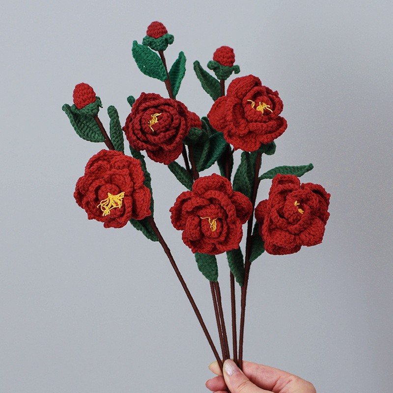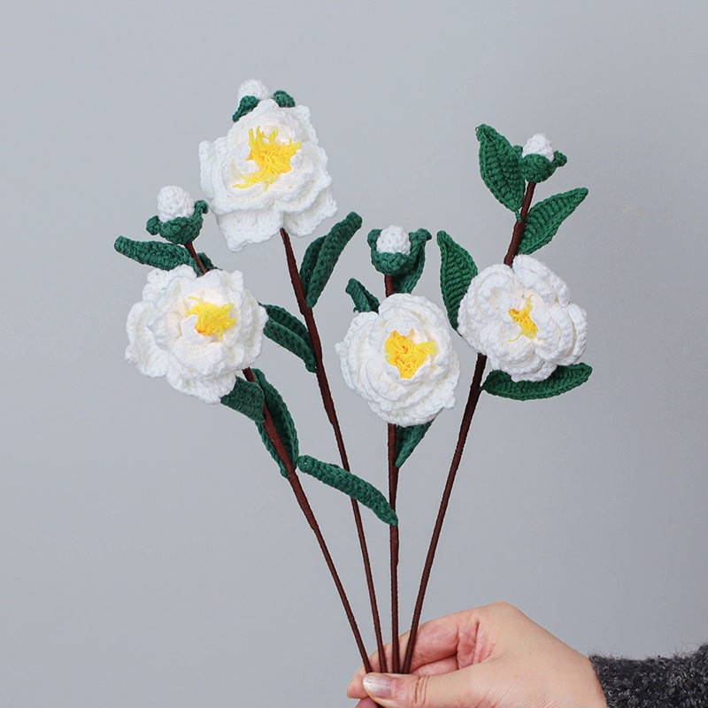 Hand-crocheted artificial lotus and peony bouquets, home desktop ornaments, preserved flowers, woven flower finished products wholesale