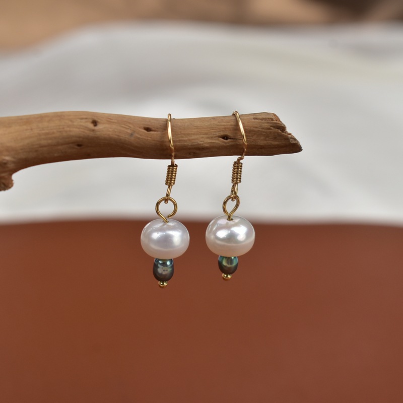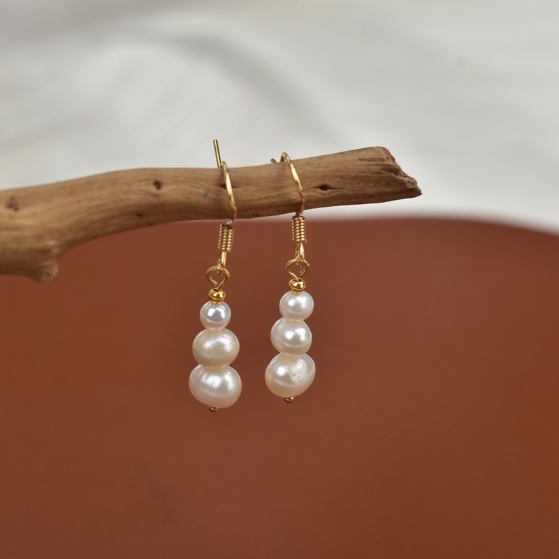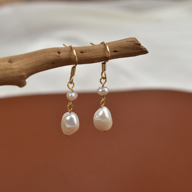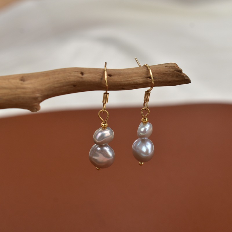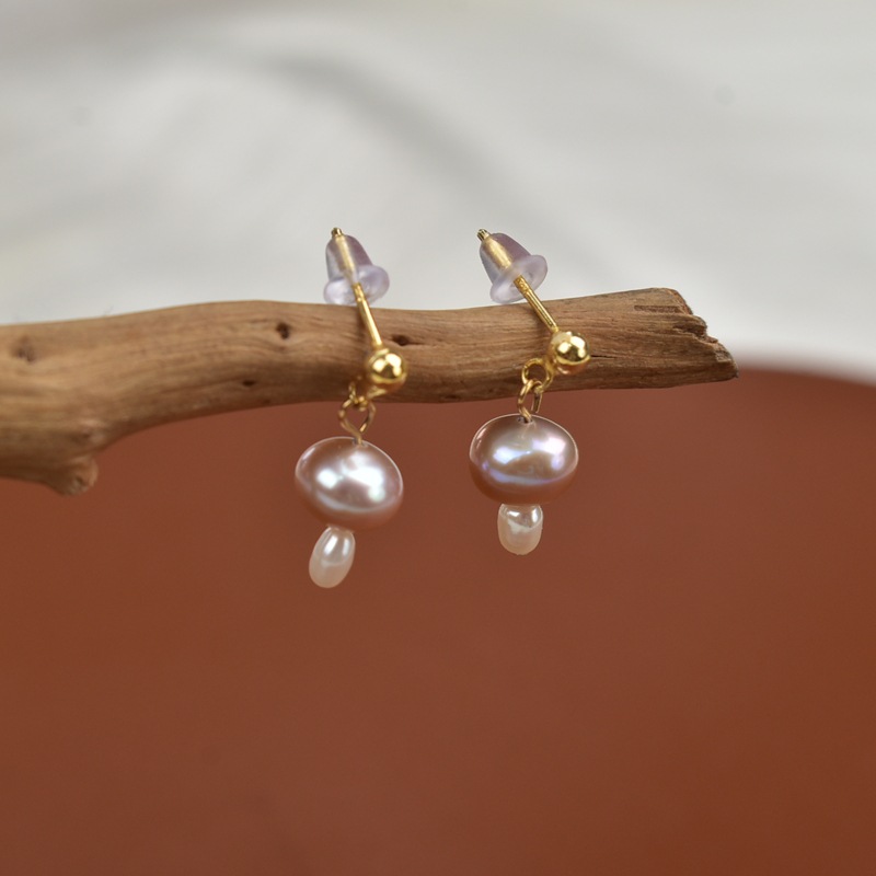Handcrafted original natural freshwater pearl earrings, mushroom-shaped Baroque French pearl earrings, high-end pearl