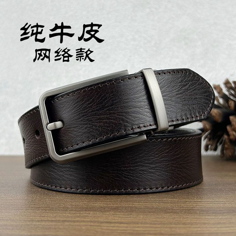 Handcrafted top-grain cowhide belt, vegetable-tanned pin buckle men's work pants, aged genuine leather trendy belt, handcrafted