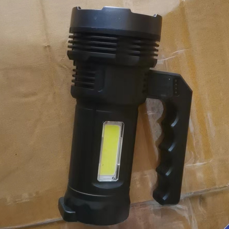 Handheld high-intensity flashlight, outdoor quad-core ultra-long-range spotlight, USB charging, cob side light display, emergency searchlight flashlight