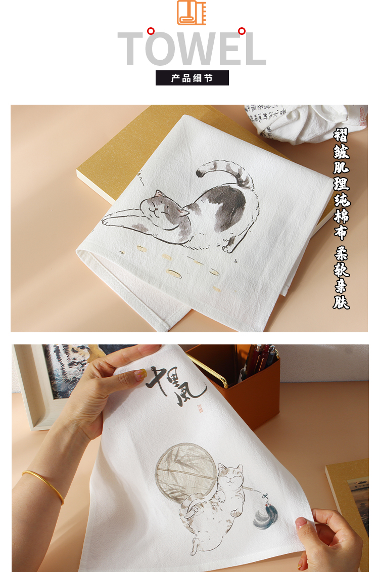 Handkerchief, lady's portable ancient-style small square towel, handkerchief, sweat-absorbing cat, personalized graduation gift for boys and girls