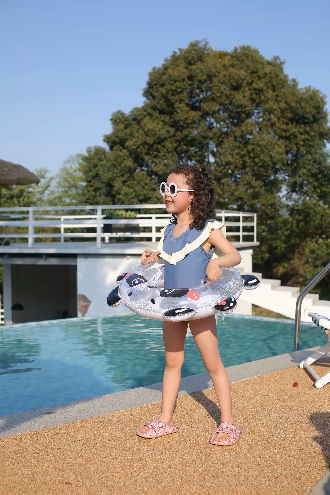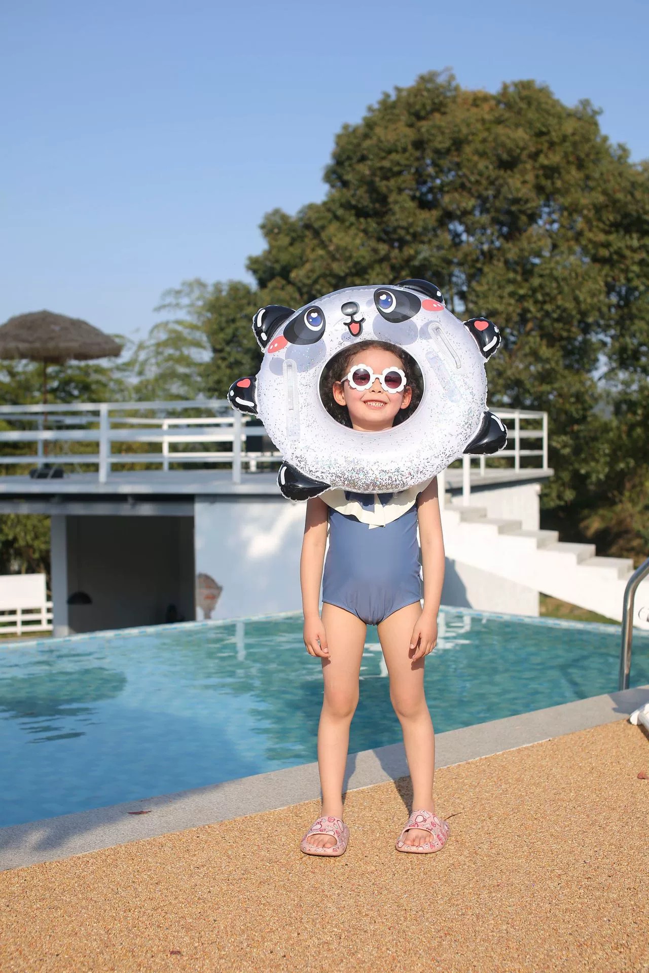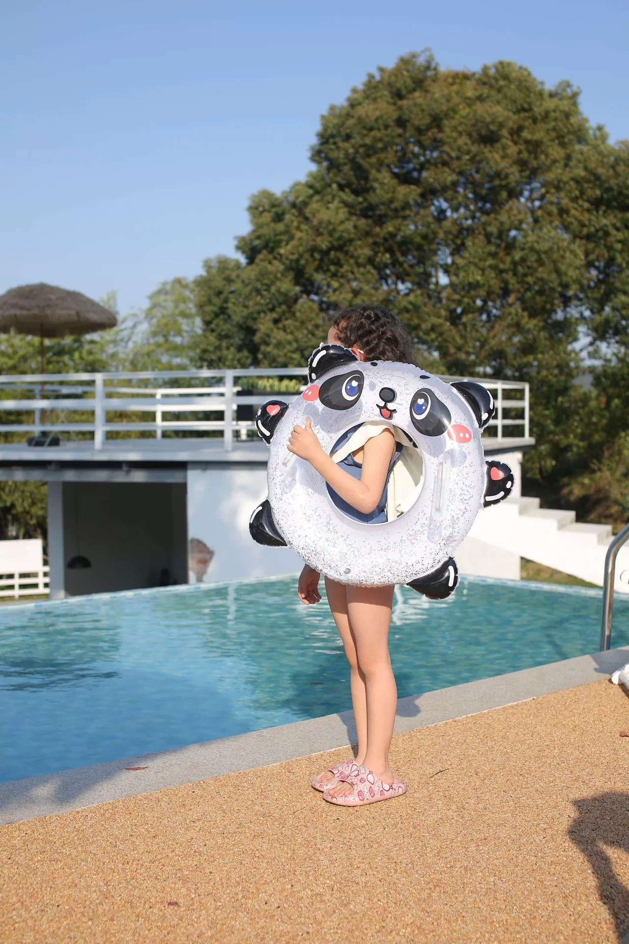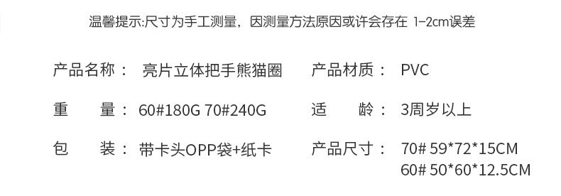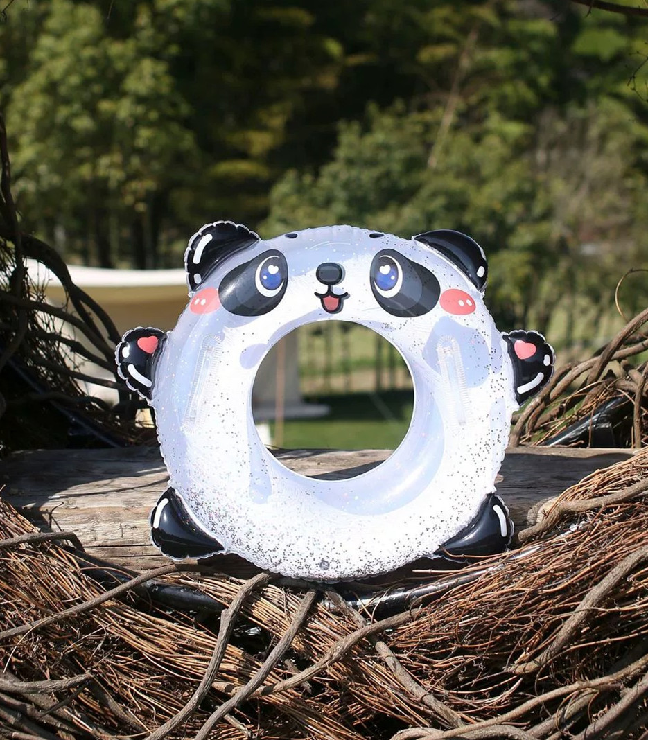 Handle sequined children's swimming ring, thickened cartoon panda lifebuoy for toddlers, transparent printed baby armpit ring