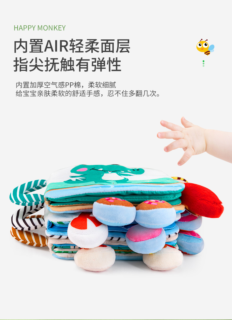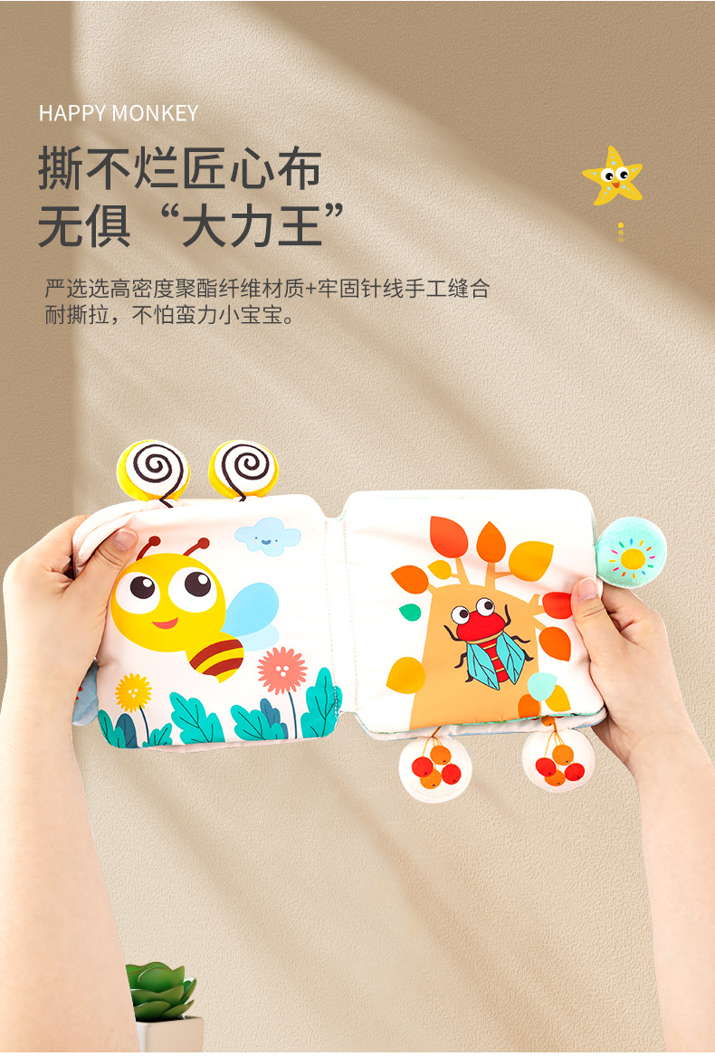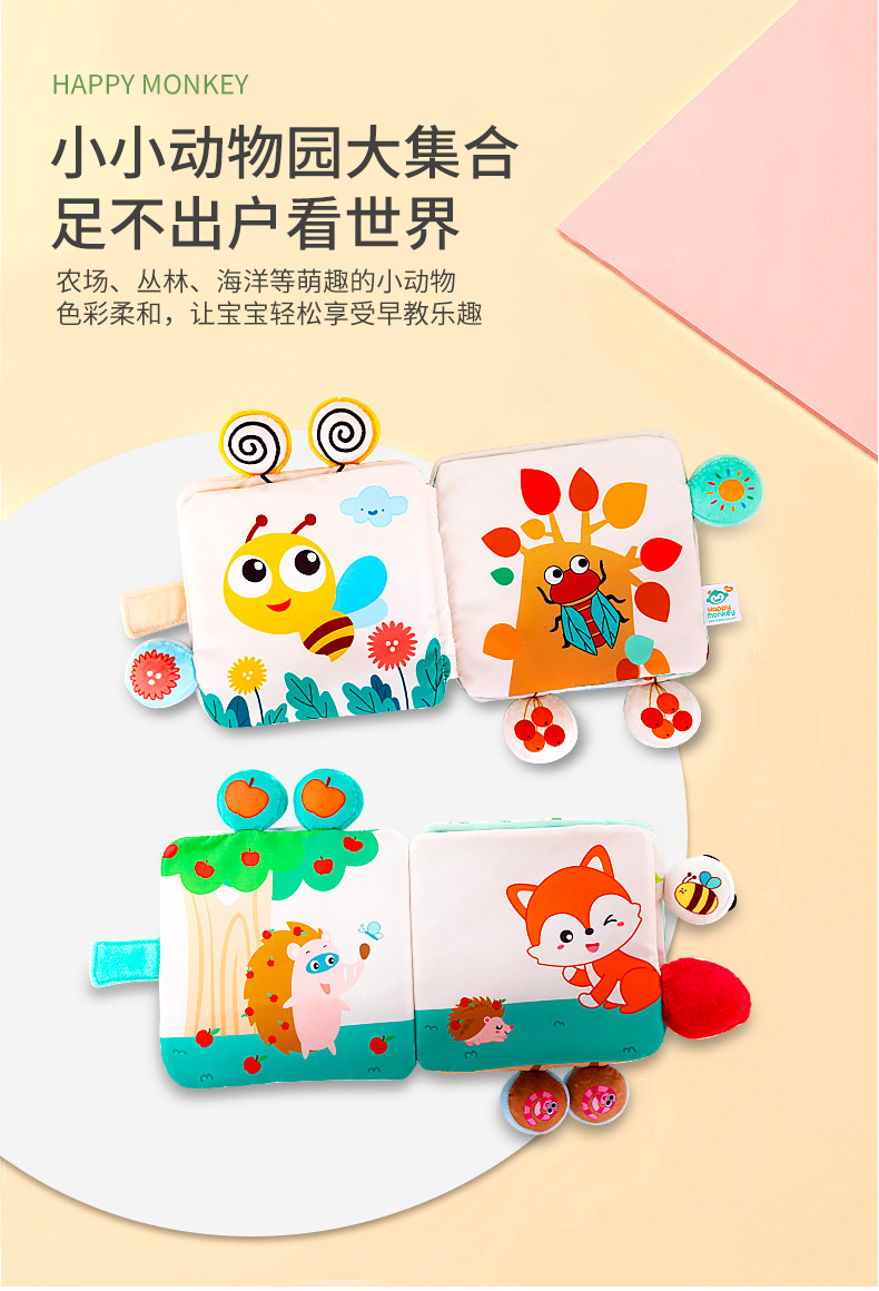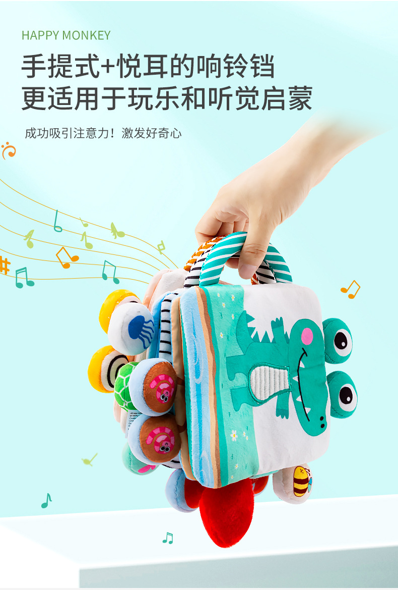 Happy monkey, the newborn baby of the Happy Monkey King, has a bell cloth book that can't be torn and can be chewed. It has three-dimensional cognition