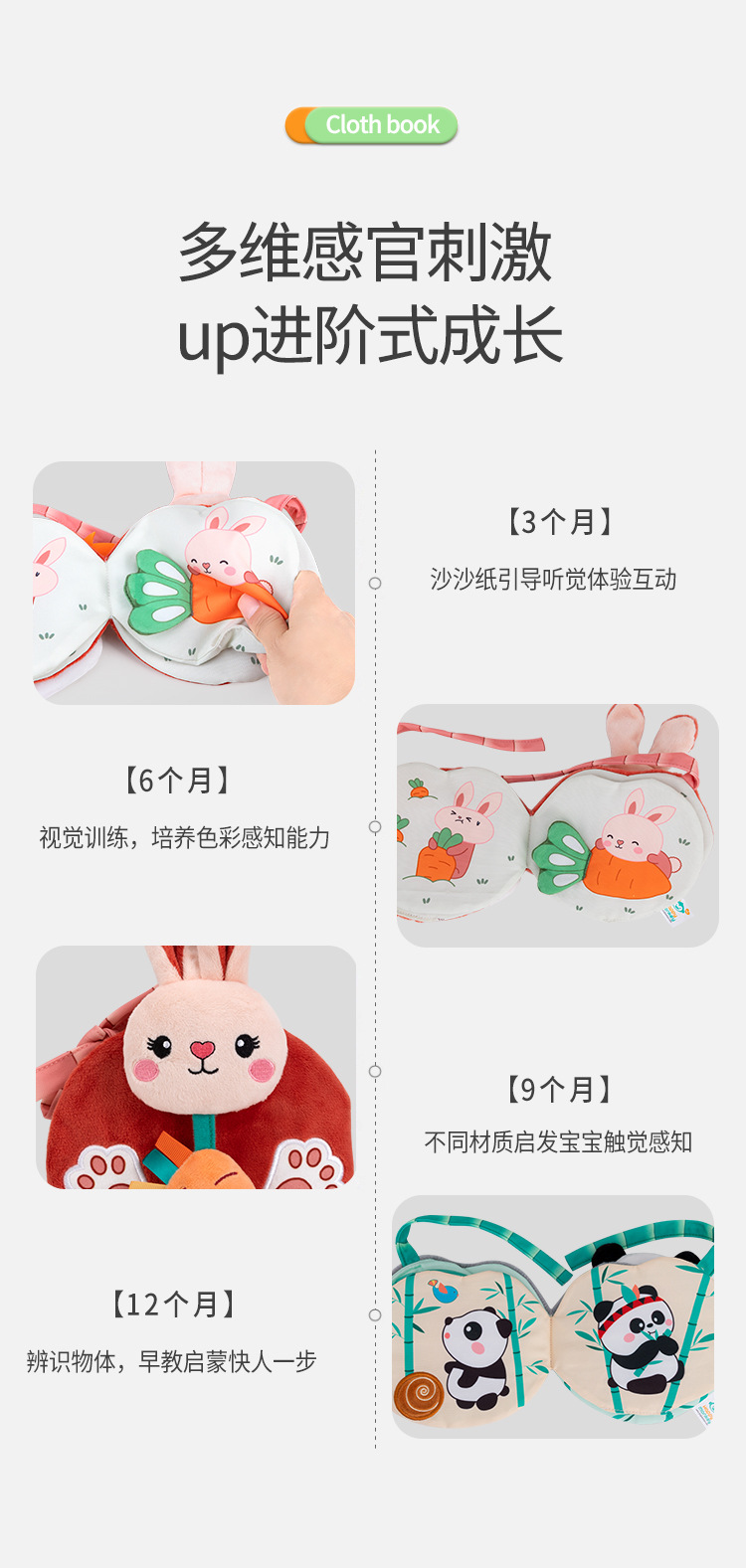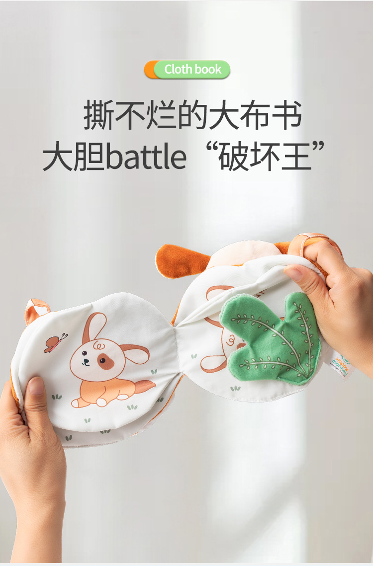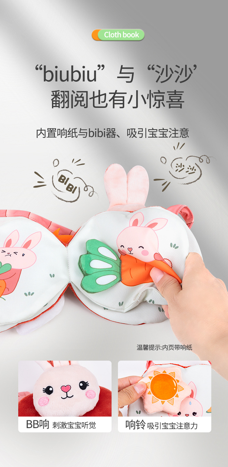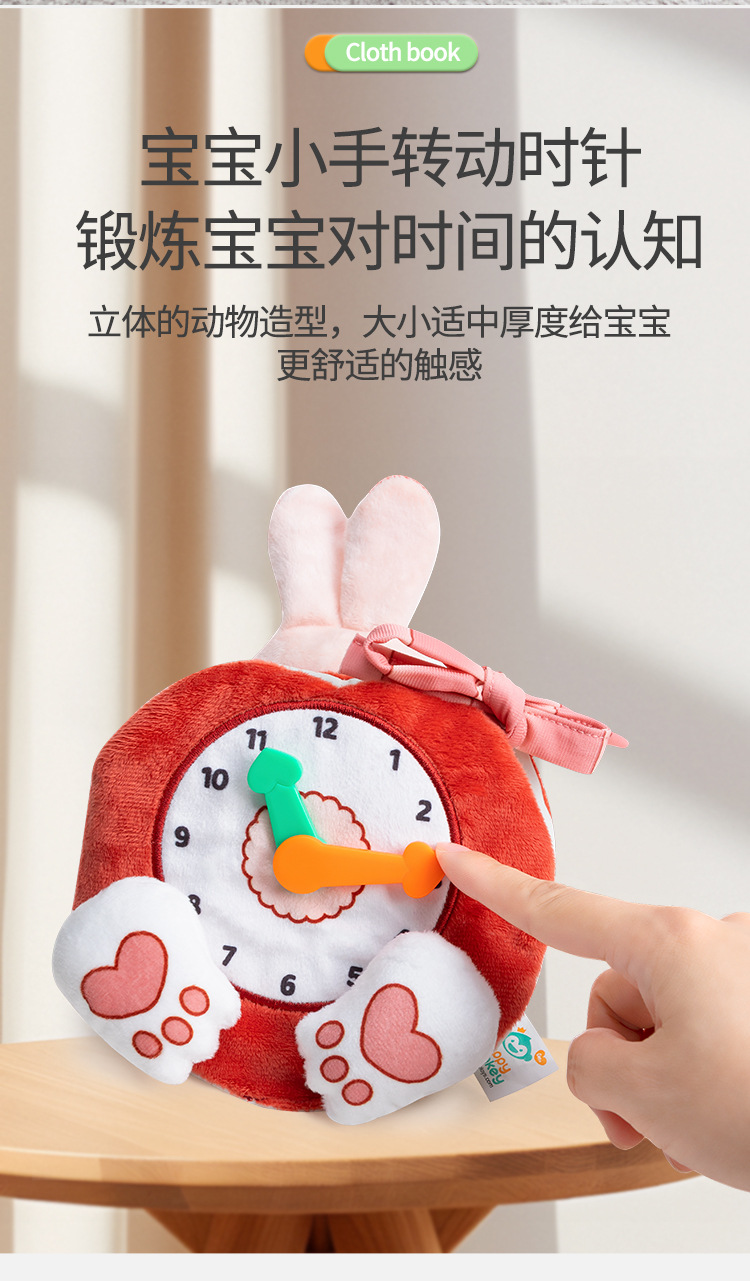 Happy monkey, unbreakable Early Education and Intelligence 3D Cloth Book, baby's cognitive plush animal toy with alarm clock