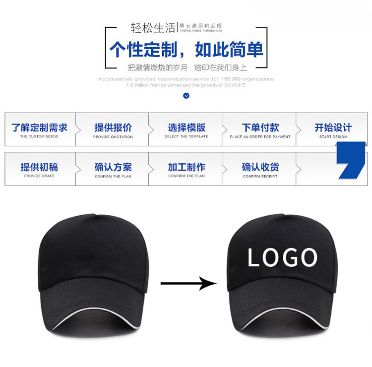 Hats, men's and women's light plates, volunteer solid color baseball caps, volunteer team travel caps, car advertisement caps with logo printing
