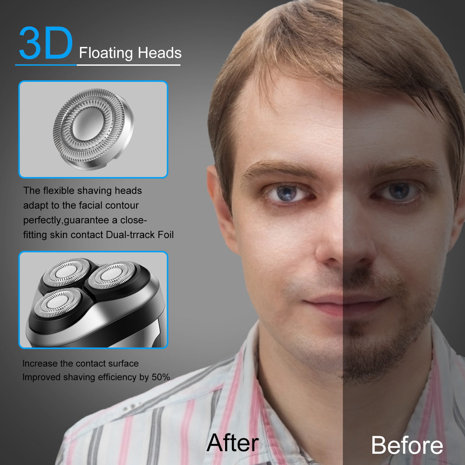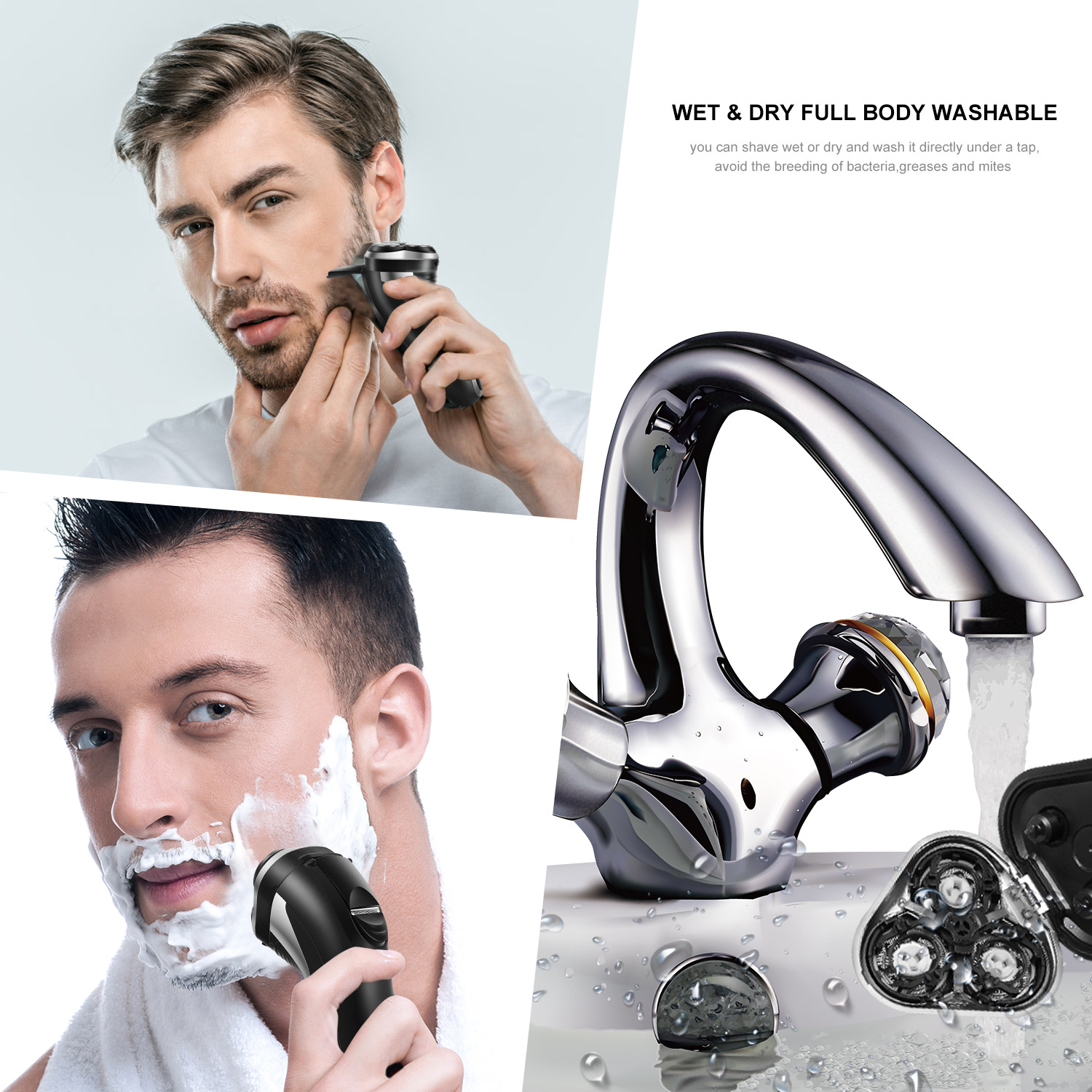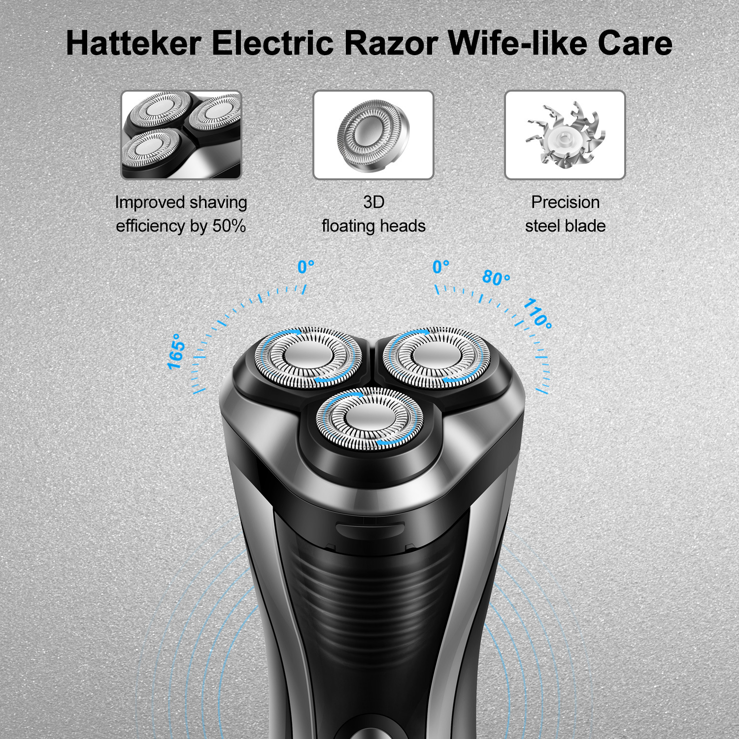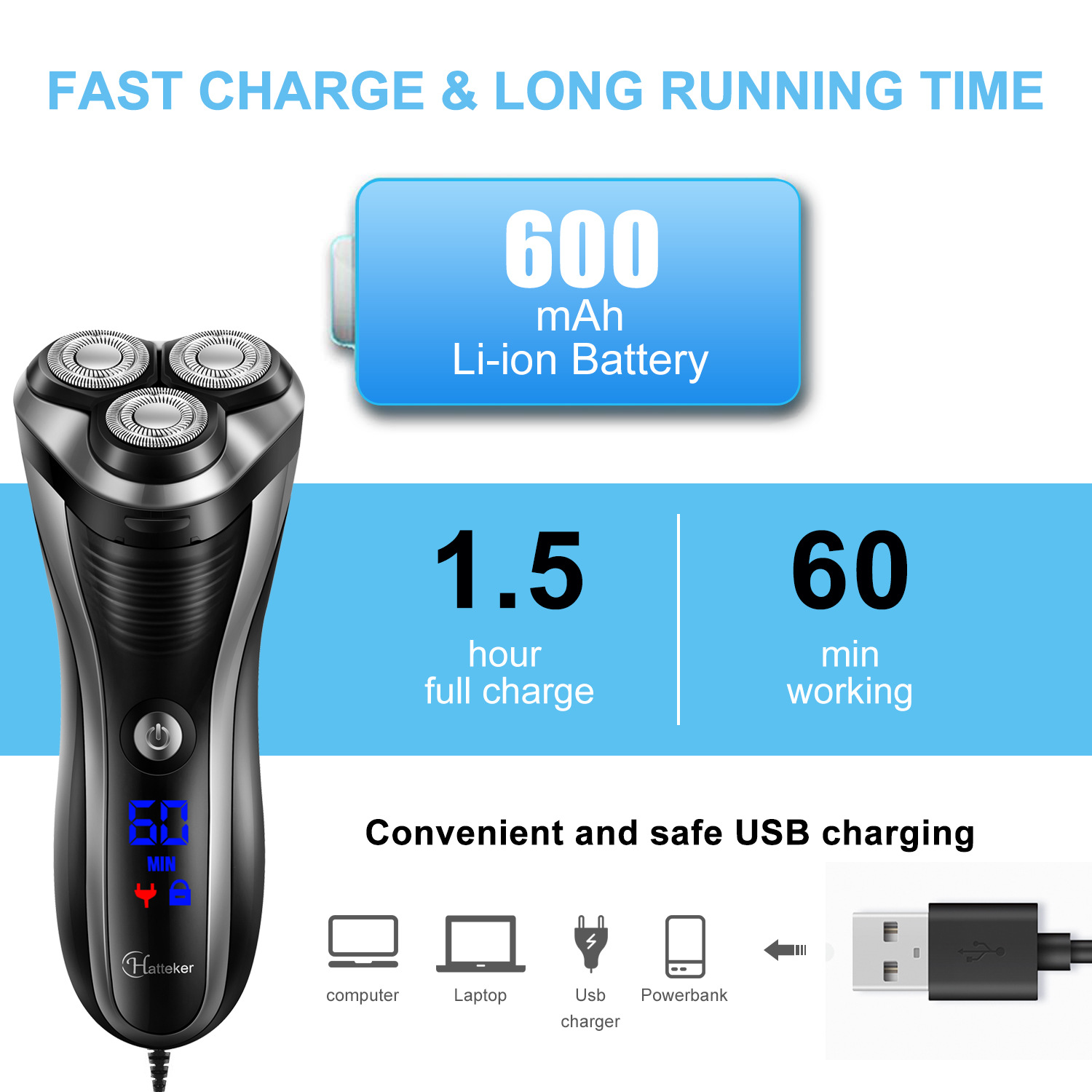 HATTEKER men's electric shaver, LCD digital display, portable razor, highly waterproof, can be fully washed with water to clean the beard