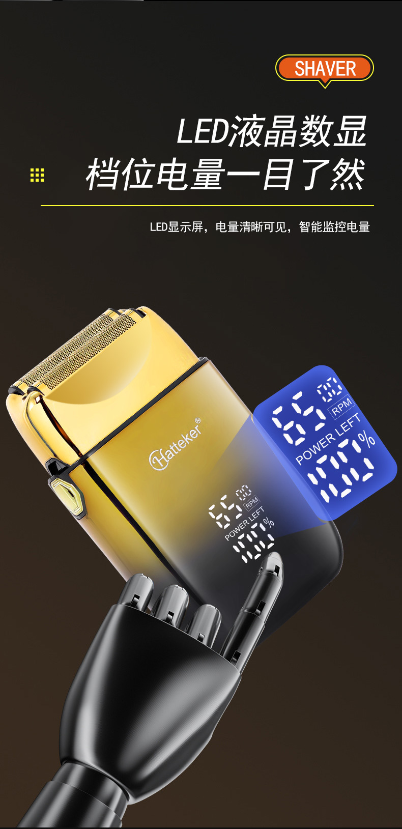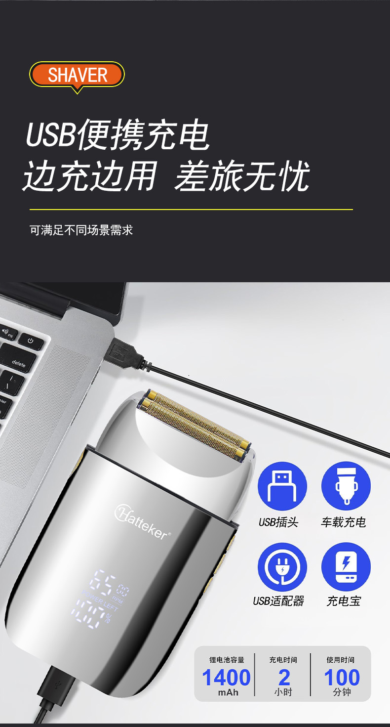 HATTEKER Reciprocating Hair Salon oil hair Whitening Machine, full-body wash men's Razor, Double mesh razor, Shaving head machine wholesale