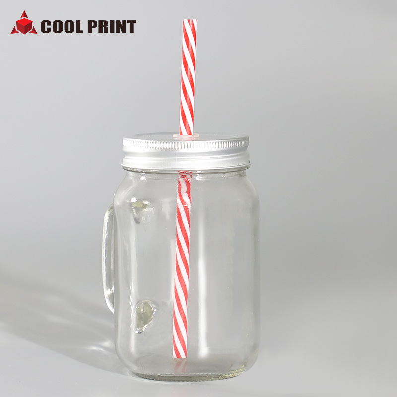 Heat transfer 12oz Mason Cup transparent heat-resistant glass cup with straw Creative transparent Mason Cup can be printed with logo