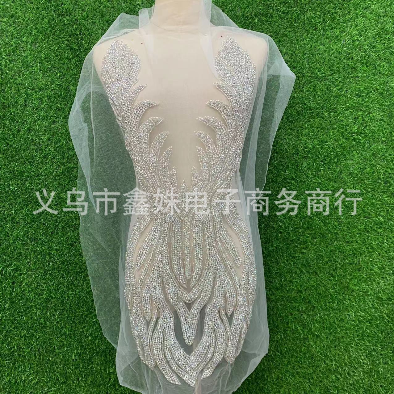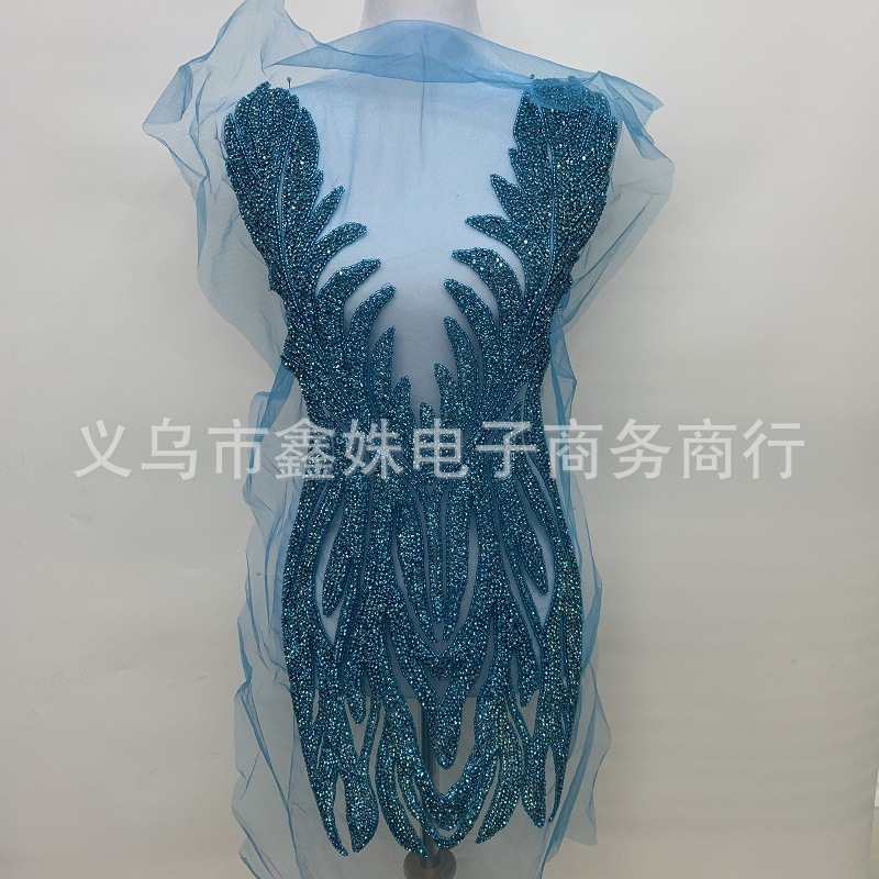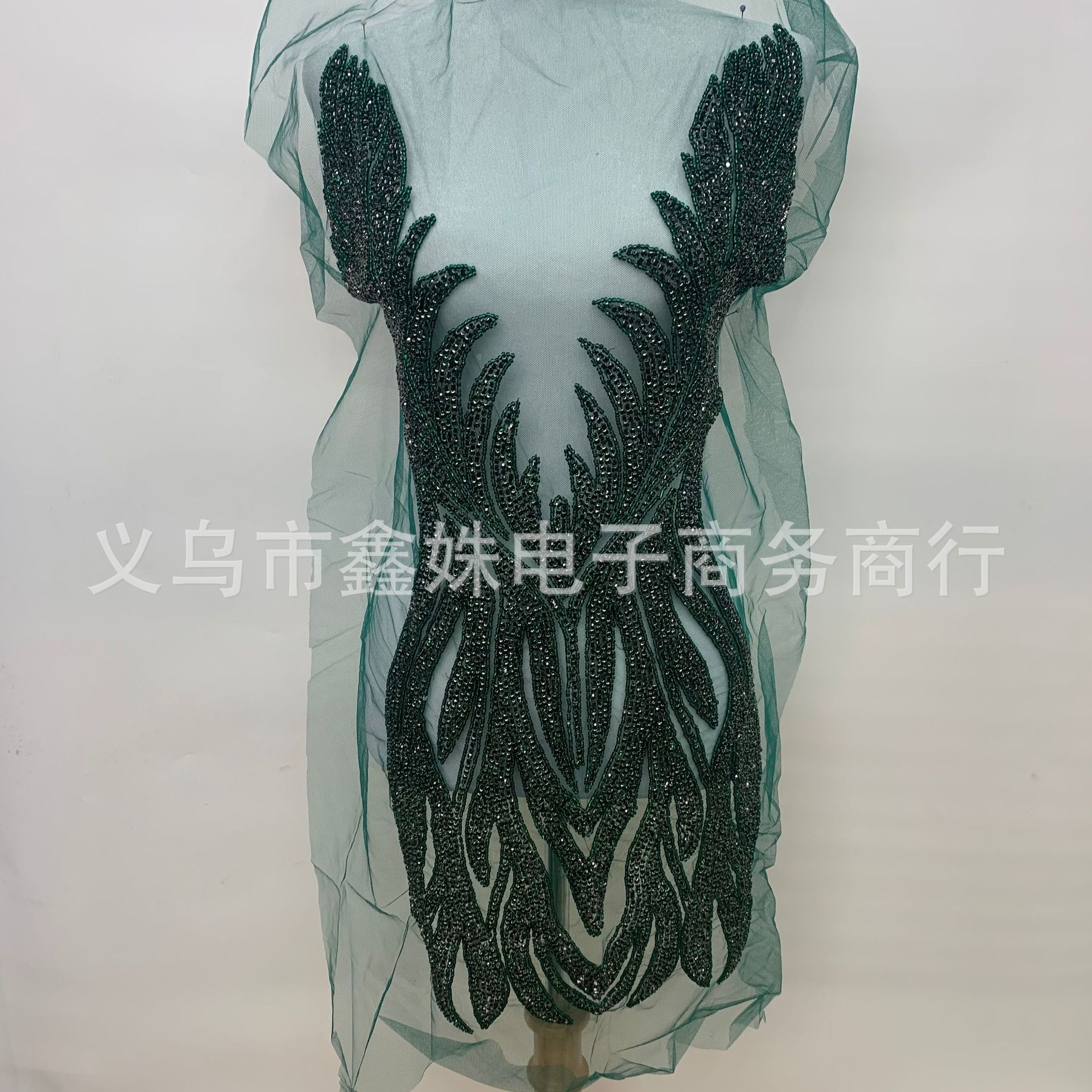 Heavy diamond jewelry, luxurious V-neck, hand-sewn beaded, green wedding dress and evening gown decorative decals