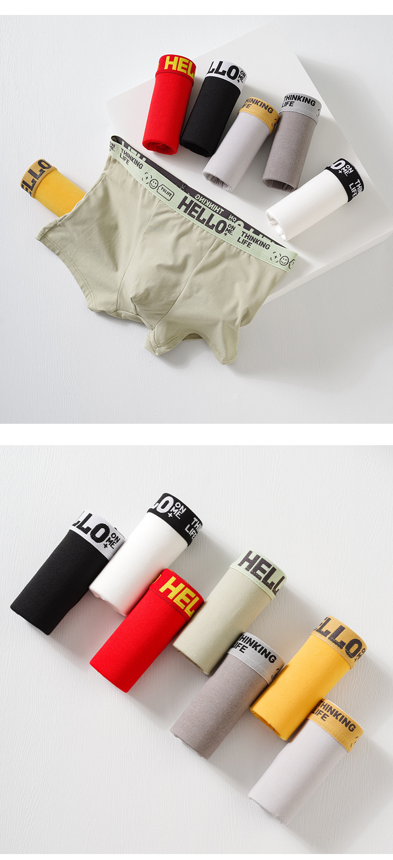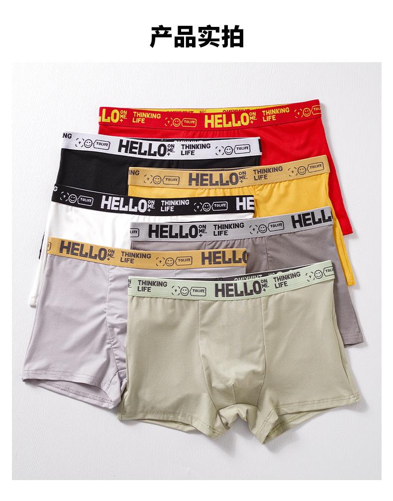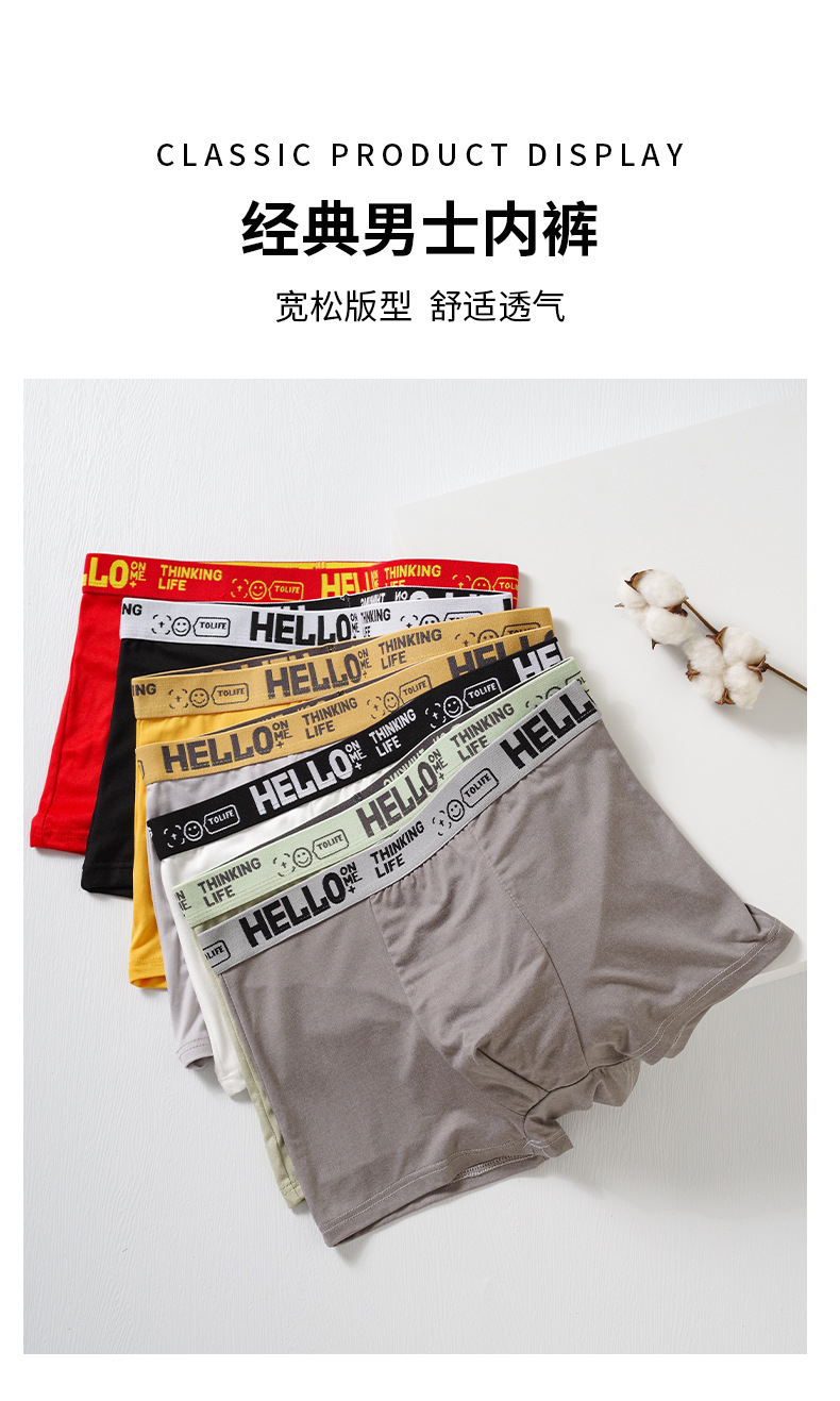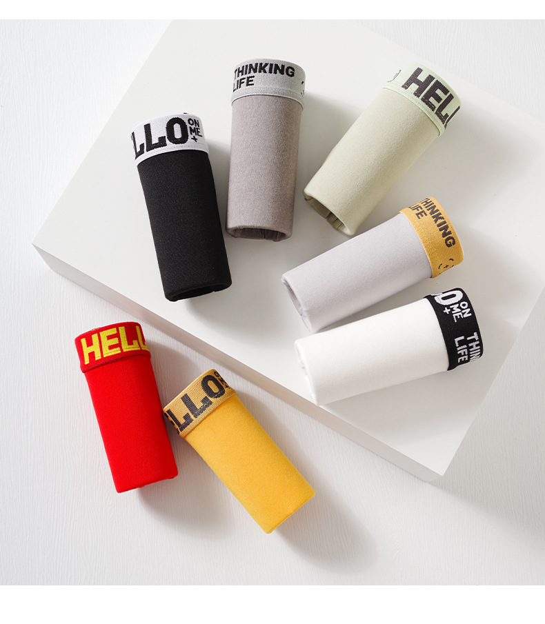HELLO brand men's underwear, large-sized breathable four-corner pants, mid-waist style, autumn and winter youth flat-corner pants, men's comfortable and warm underwear