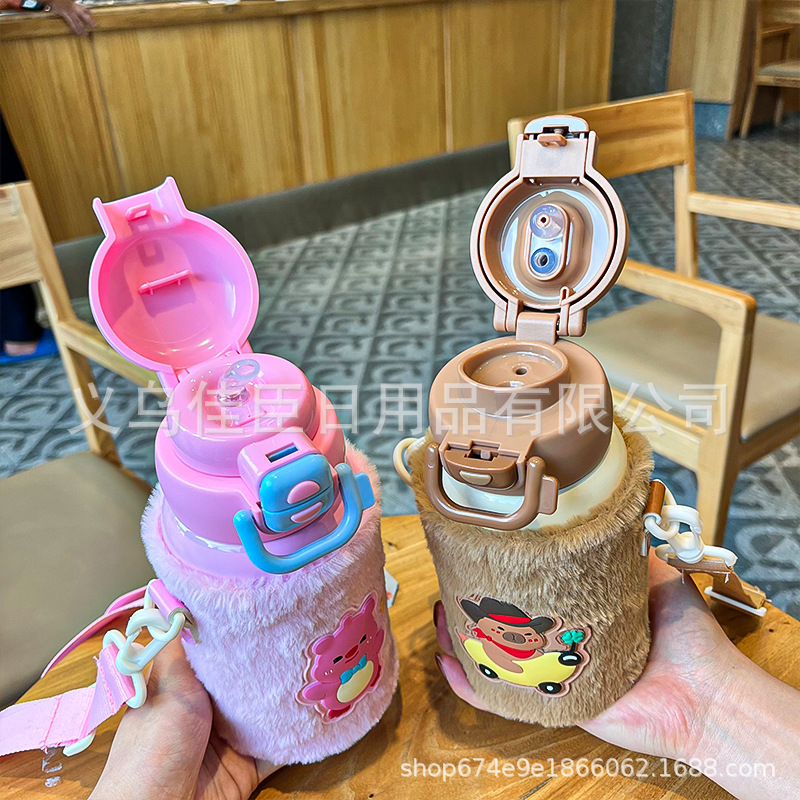 High appearance level of insulated cup with plush cup sleeve, children and students' water cup, high appearance level of portable 316 travel cup, insulated water