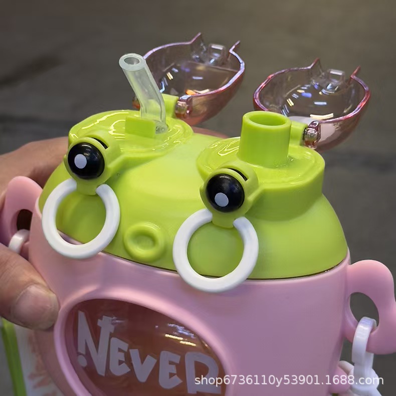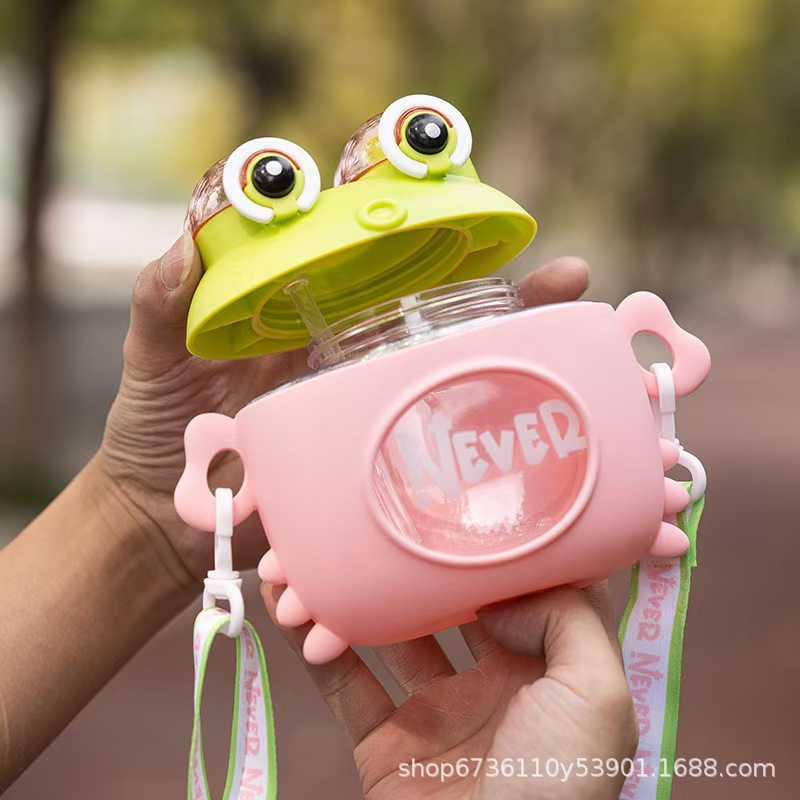 High-appearation-level children's creative crab cup, crab boss cartoon water cup, anti-drop, high-appearation-level children's plastic straw cup pairs