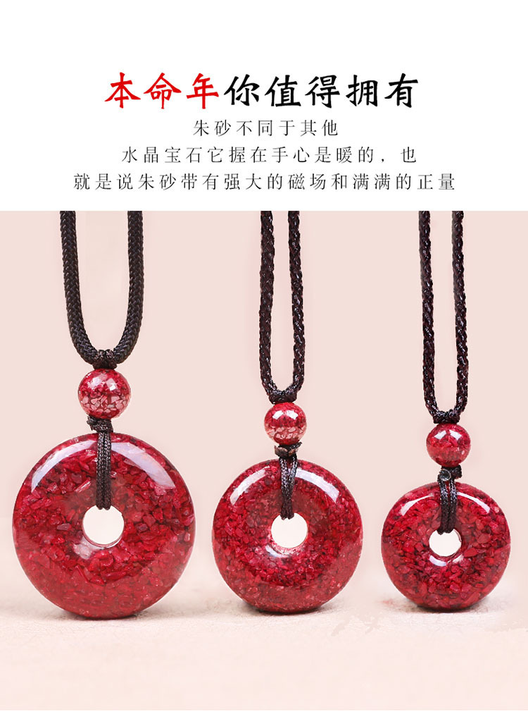 High-content natural cinnabar pendant for men and women, high-purity crystal, original stone for children's zodiac year, peace button sweater chain