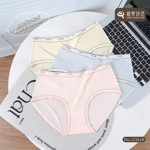 High-elasticity large-sized women's underwear, mid-waist and hip comfort triangle pants, bow, solid color, seamless breathable bottom pants wholesale
