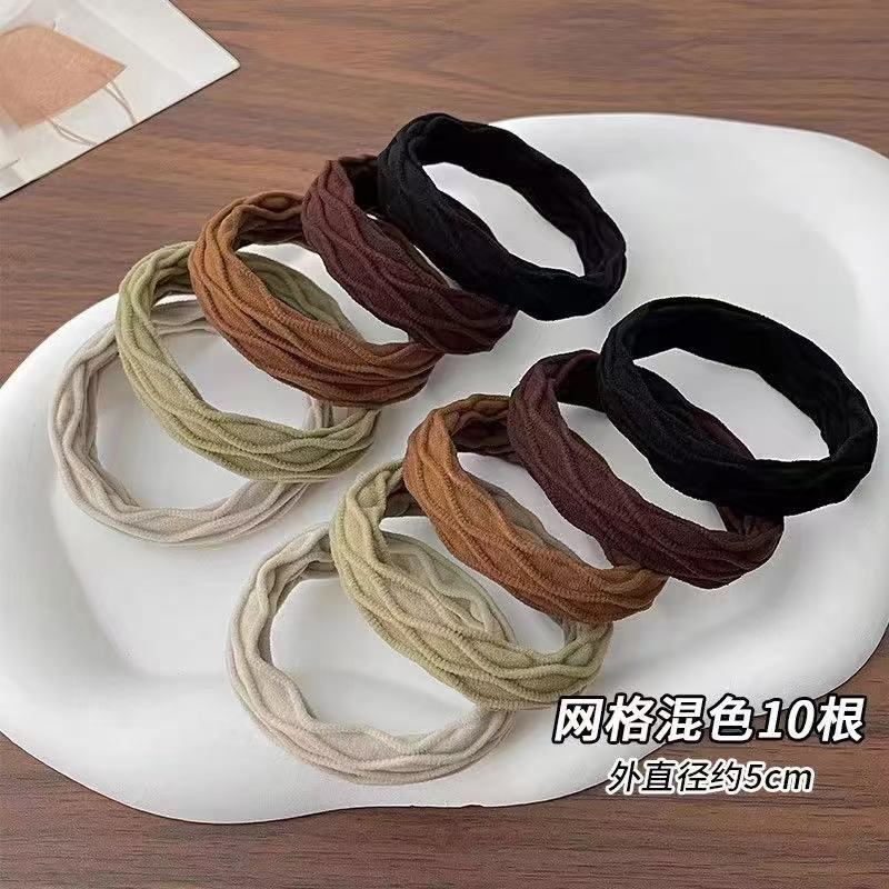 5174 high-elasticity rubber band hair bands - 10 pieces of grid mixed color